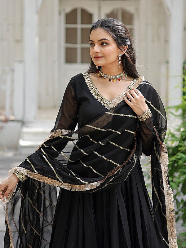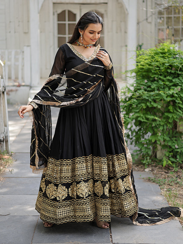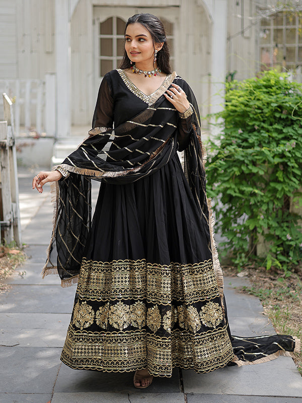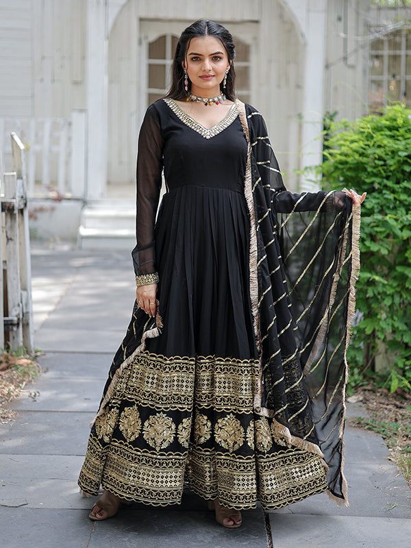 Black Faux Blooming Designer Lace Border Gown With Dupatta Black Faux Blooming Designer Lace Border Gown With Dupatta