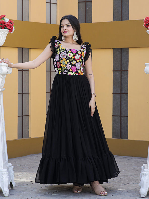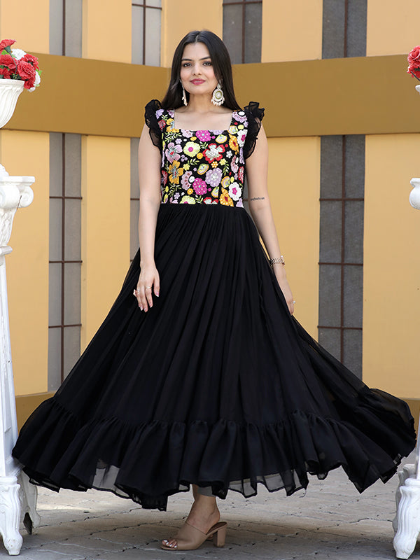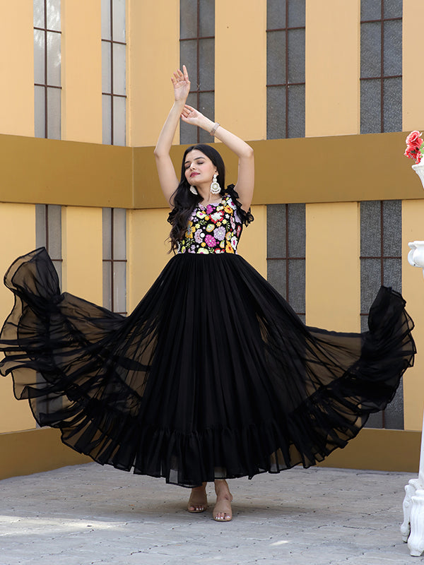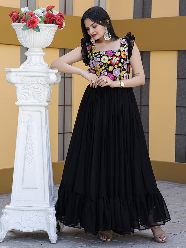 Black Faux Blooming With Sequins Embroidered Gown – Vamikaa