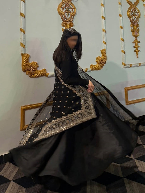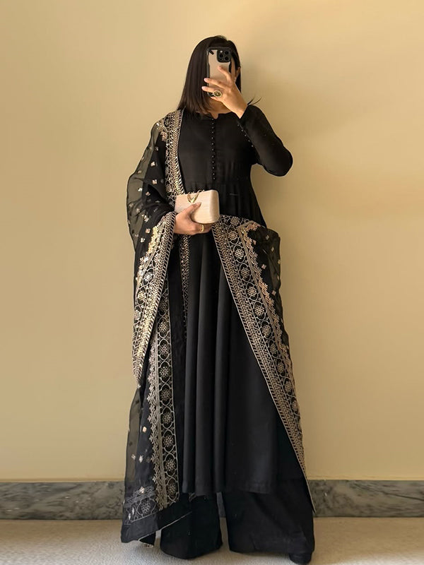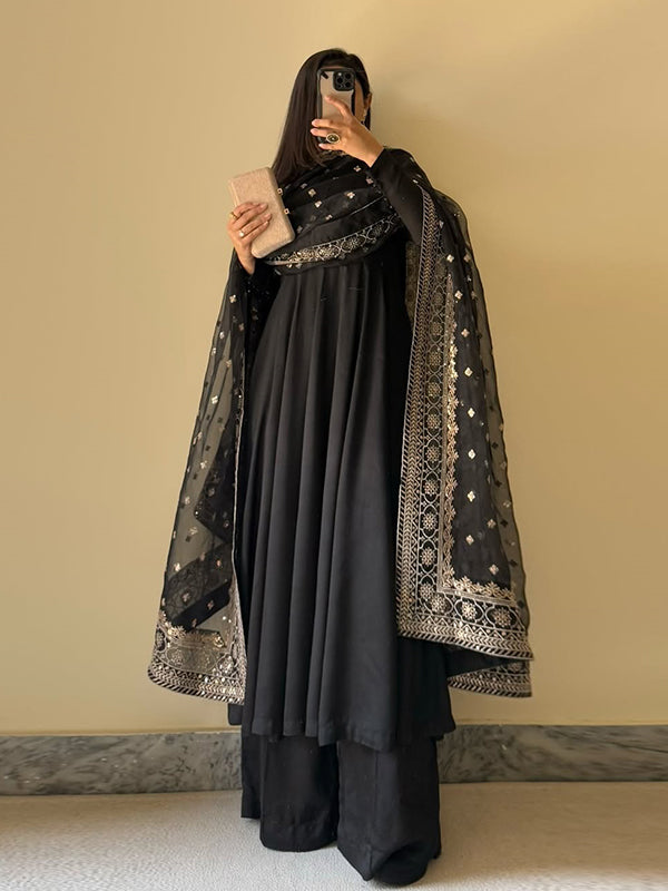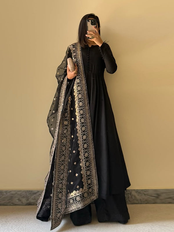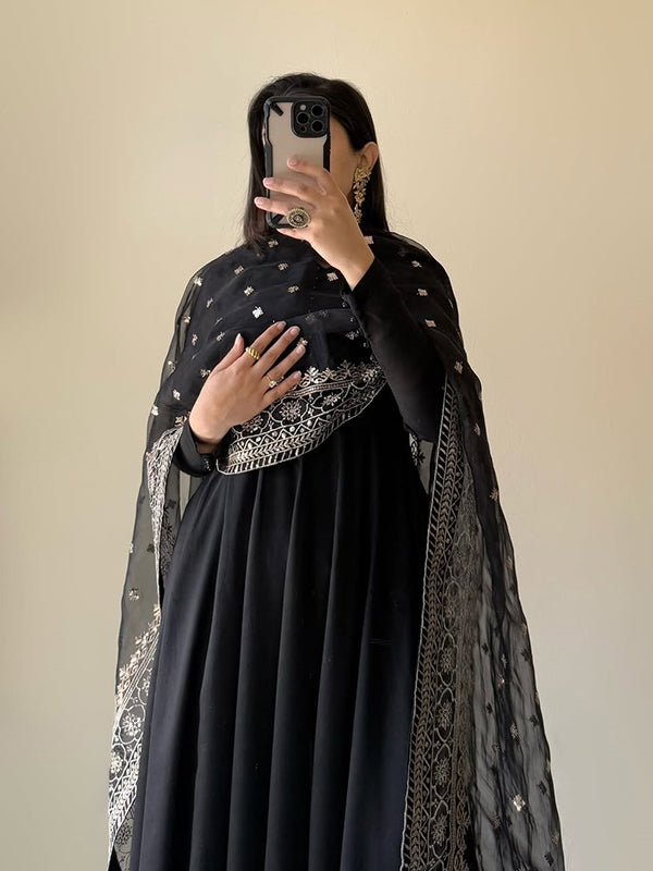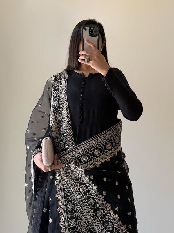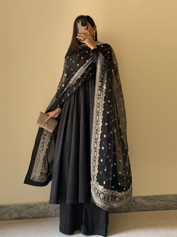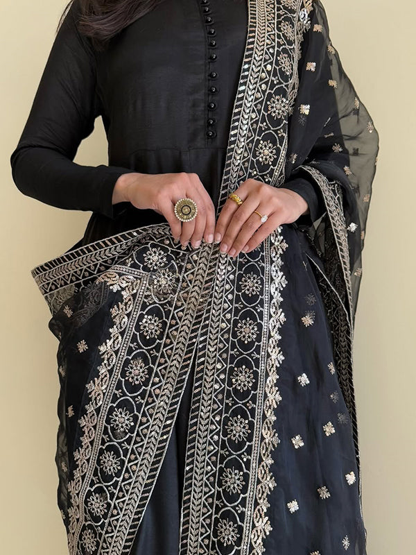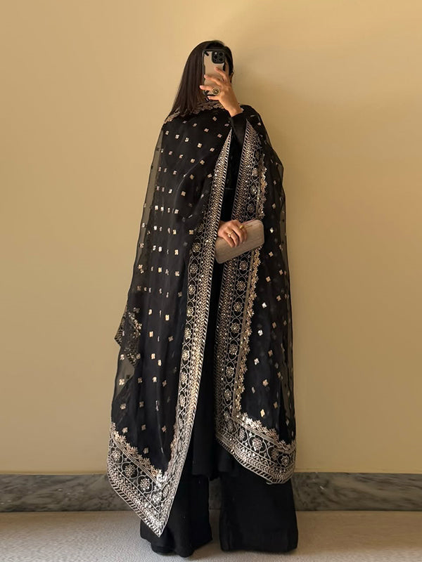 Black Georgette Kurta With Pant & Dupatta Set – Vamikaa