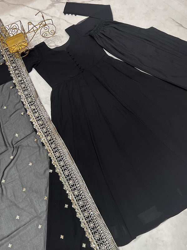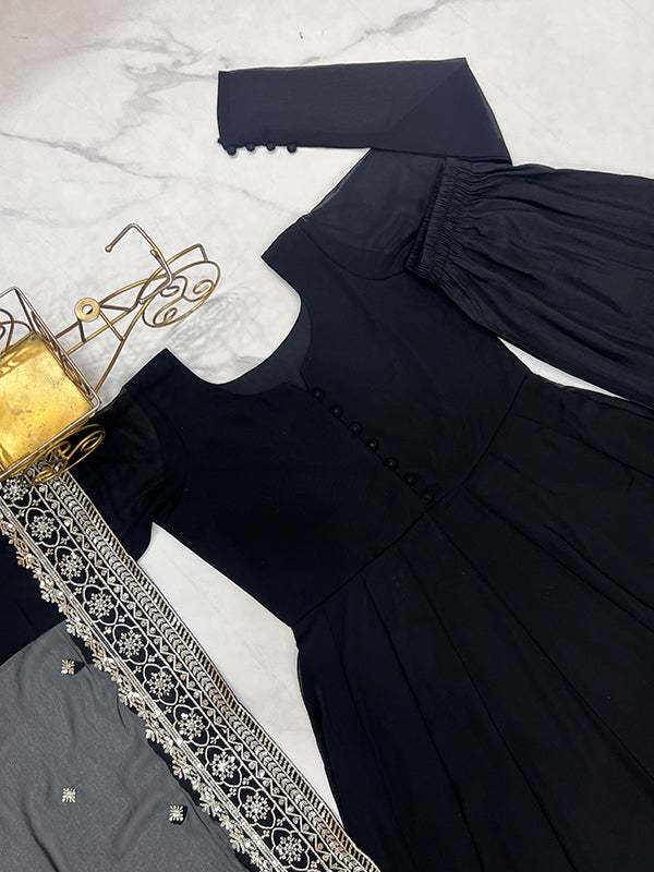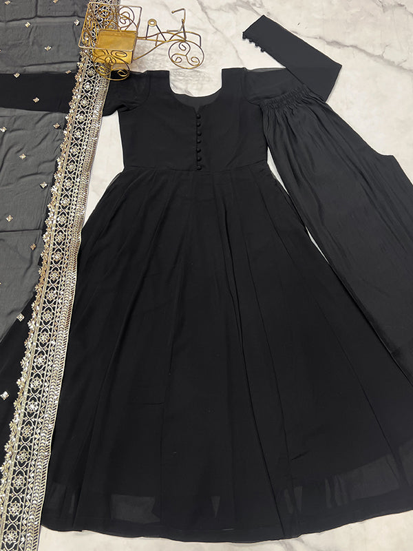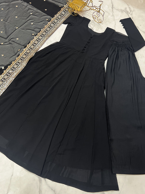 Black Georgette Kurta With Pant & Dupatta Set Black Georgette Kurta With Pant & Dupatta Set