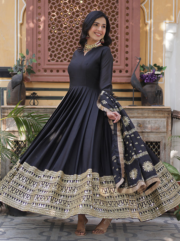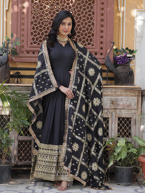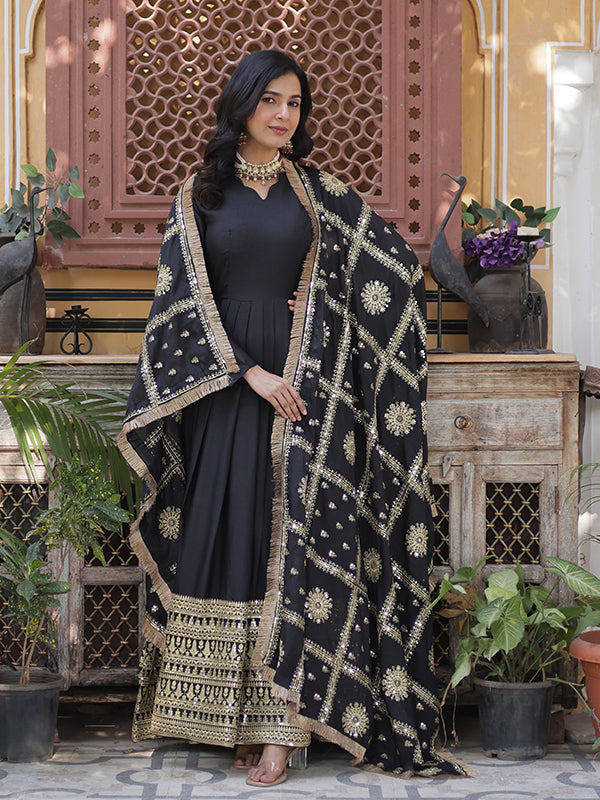Black Georgette Zari Sequins Embroidered Gown With Dupatta – Vamikaa