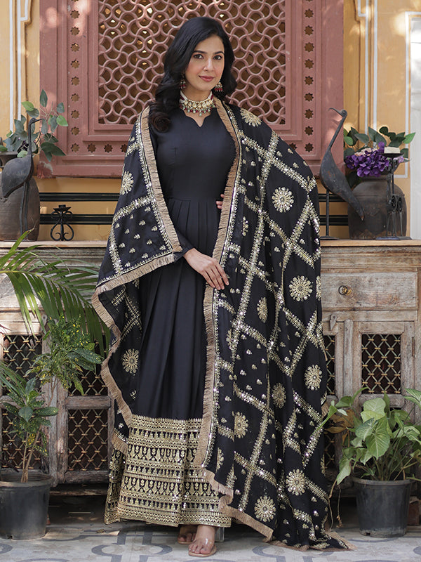 Black Georgette Zari Sequins Embroidered Gown With Dupatta Black Georgette Zari Sequins Embroidered Gown With Dupatta