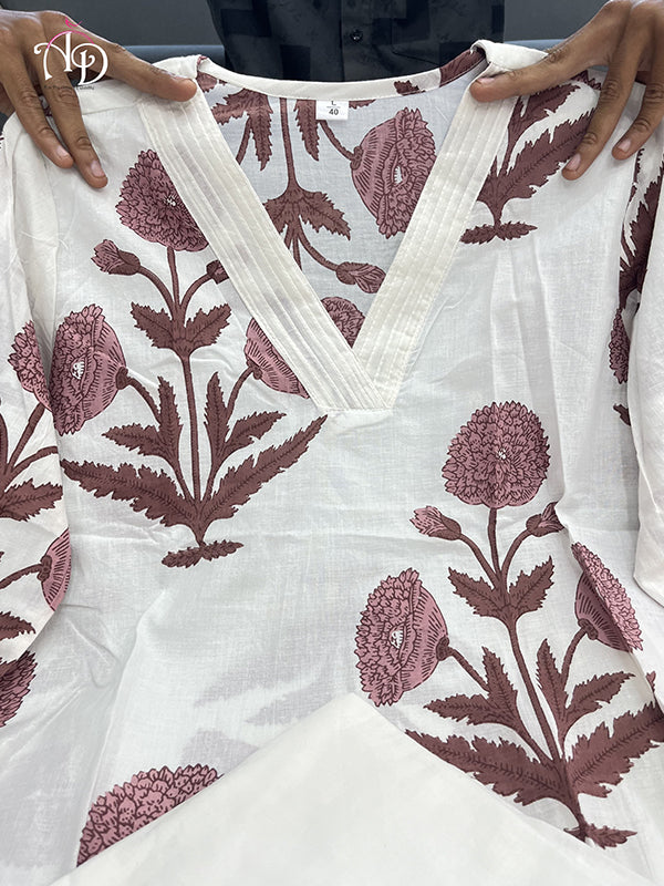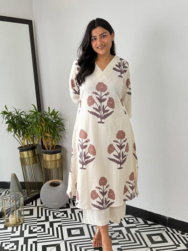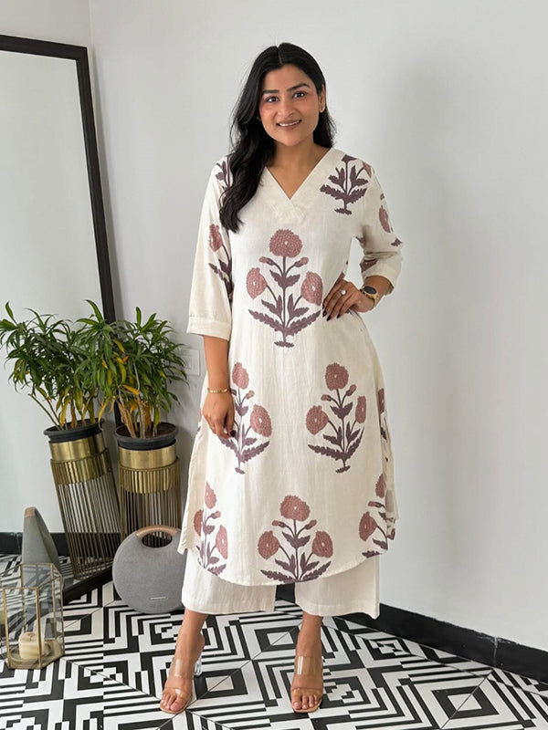 Brown Cotton Printed Kurta With Pant – Vamikaa