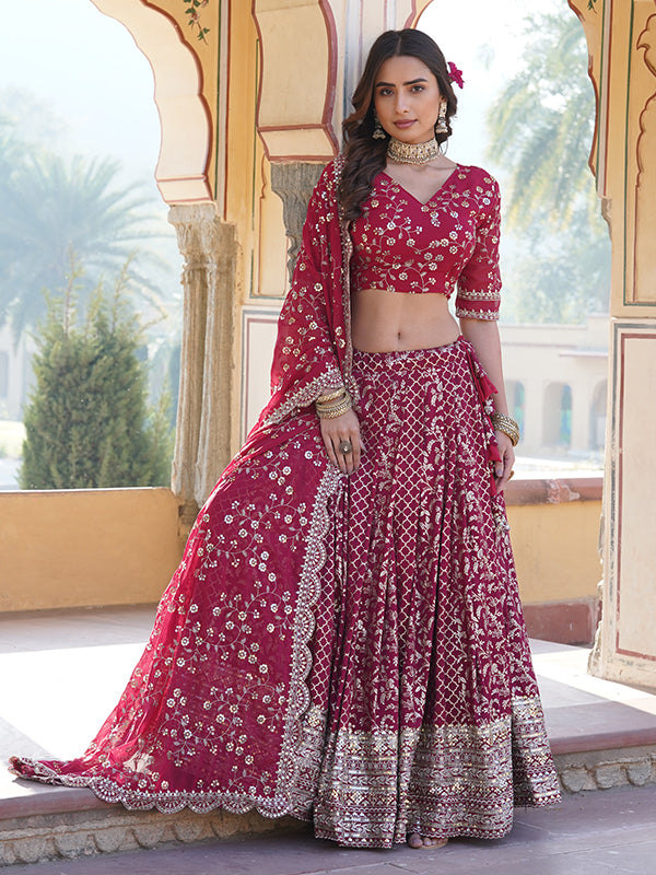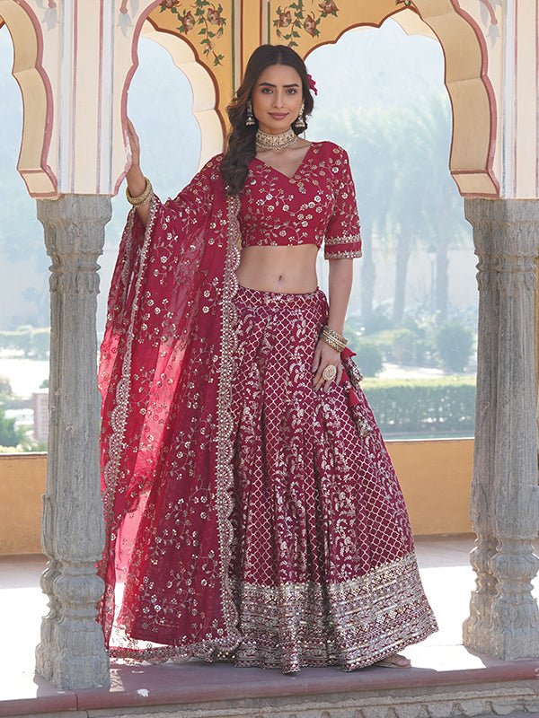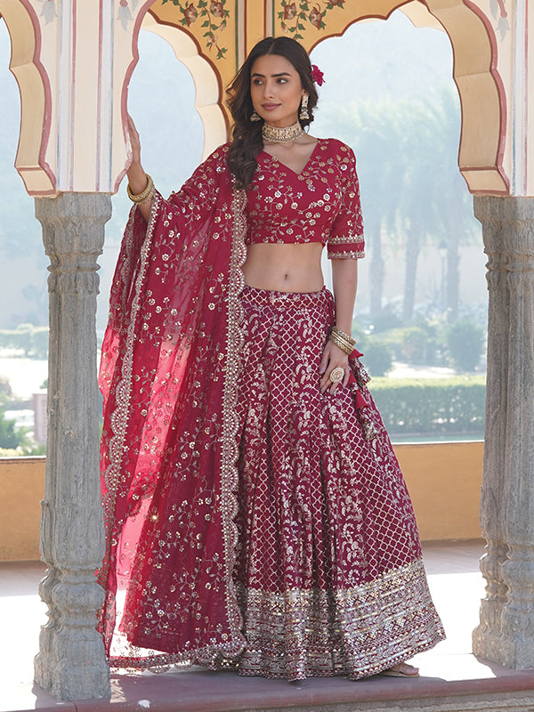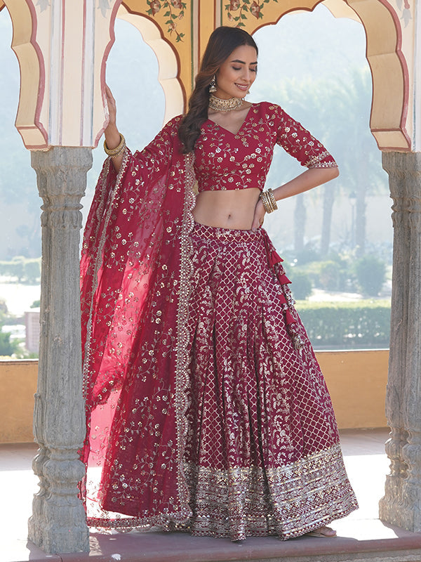 Deep Pink Viscose Jacquard With Embroidered Sequins Lehenga Choli – Vamikaa