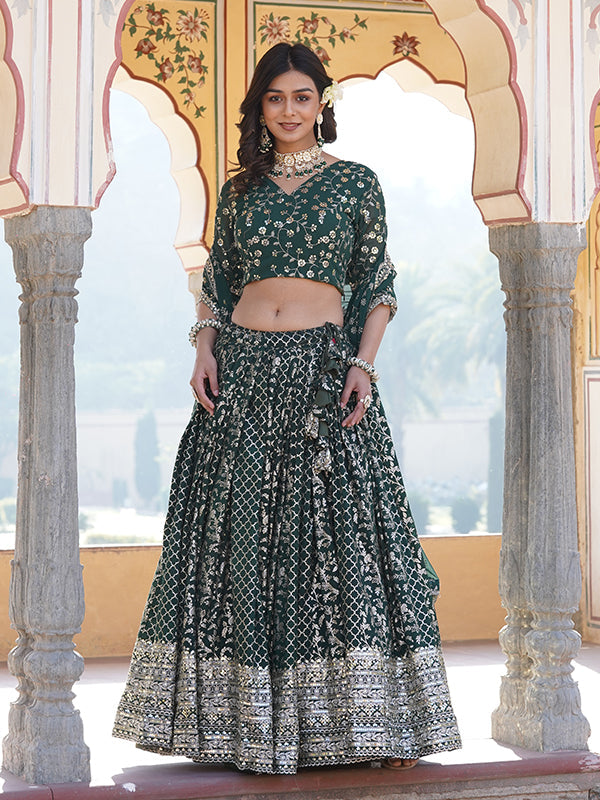 Green Viscose Jacquard With Embroidered Sequins Lehenga Choli