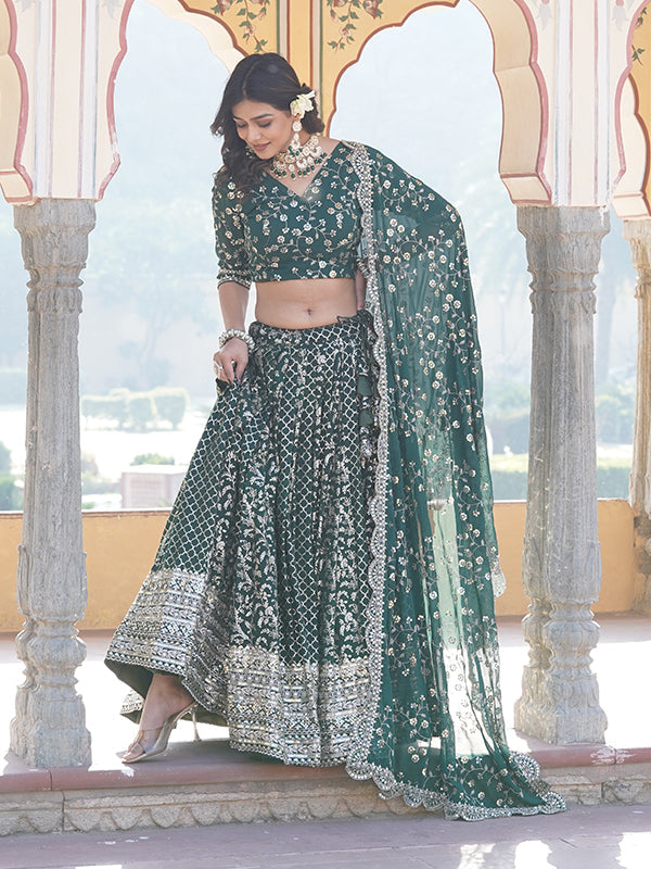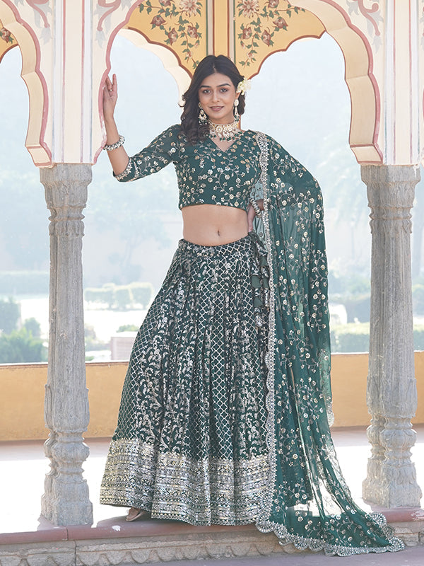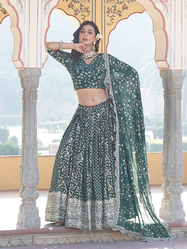 Green Viscose Jacquard With Embroidered Sequins Lehenga Choli Green Viscose Jacquard With Embroidered Sequins Lehenga Choli