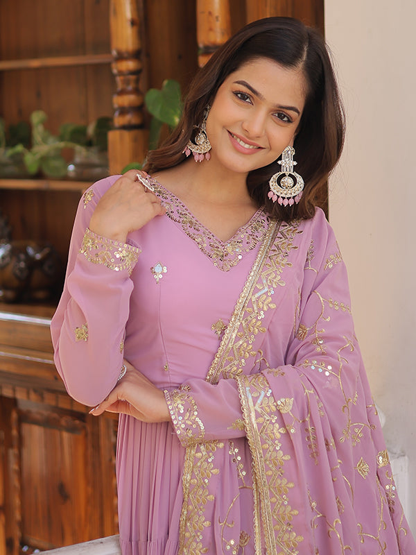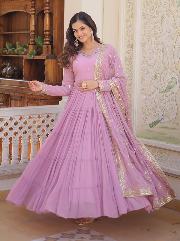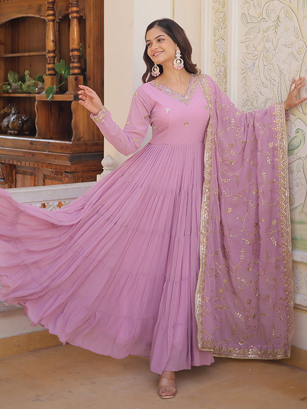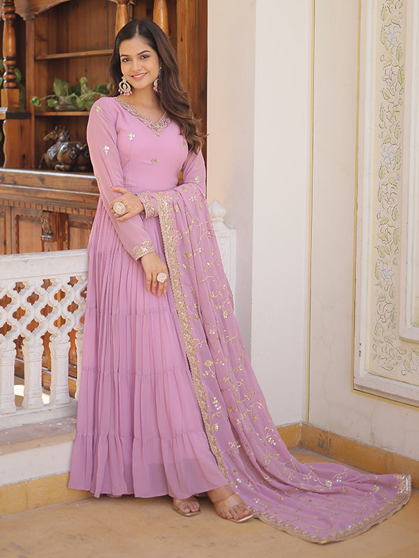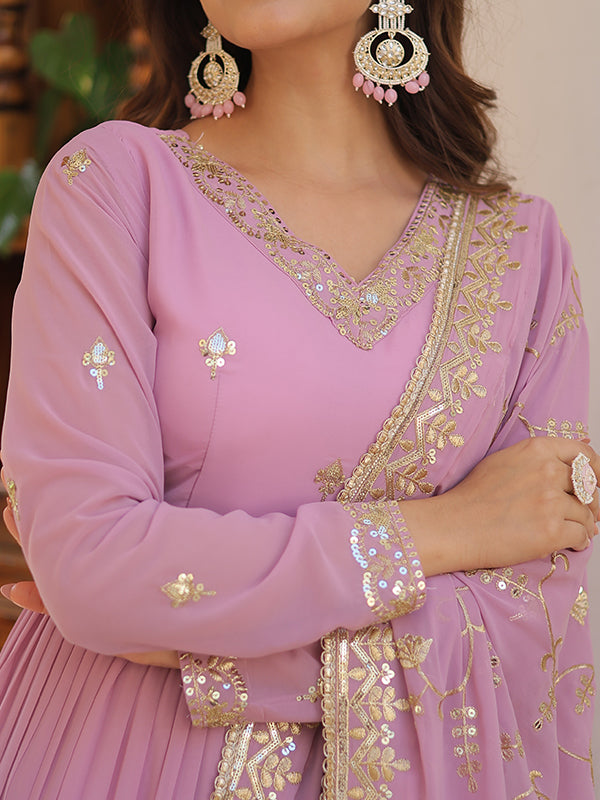 Light Pink Faux Georgette with Embroidered Work Gown With Dupatta