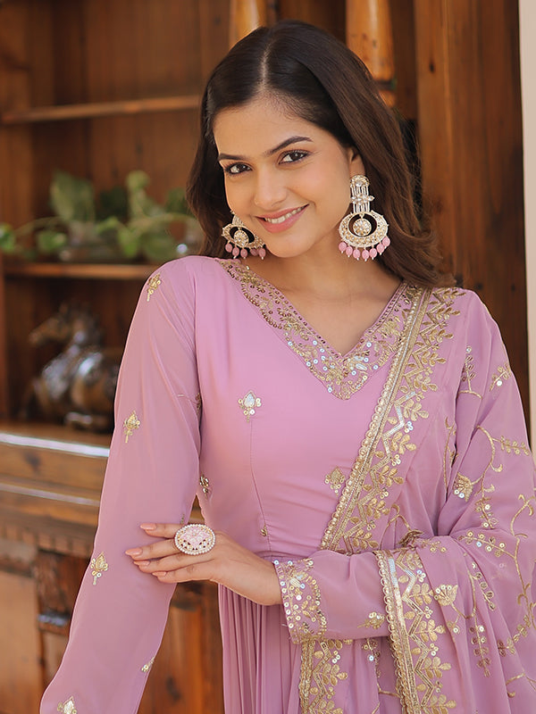 Light Pink Faux Georgette with Embroidered Work Gown With Dupatta – Vamikaa