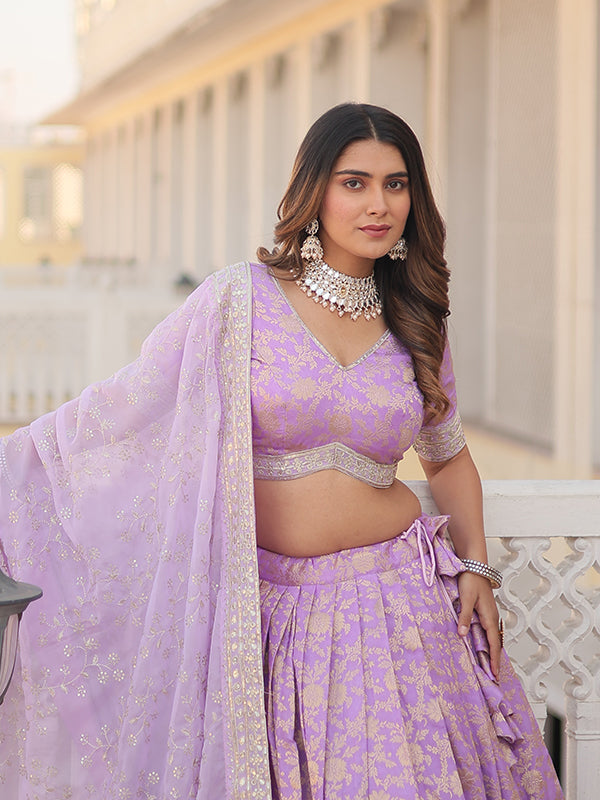 Light Purple Viscose Jacquard With Embroidered Sequins Lehenga Choli