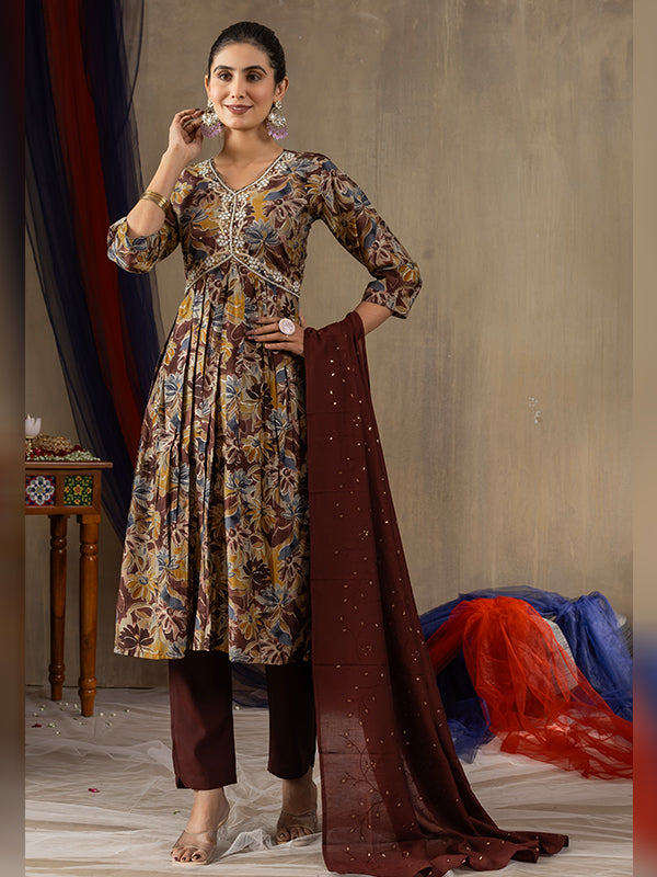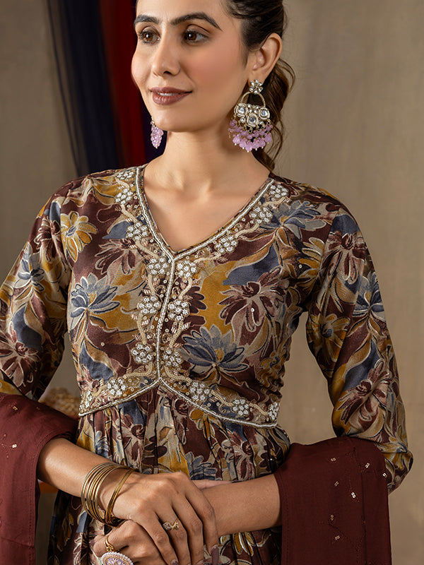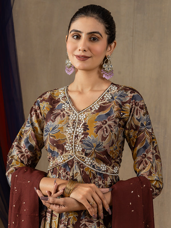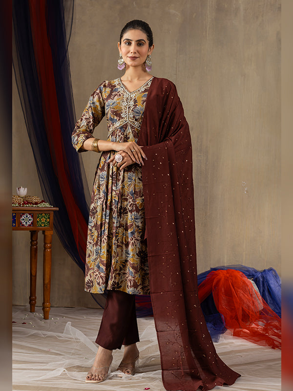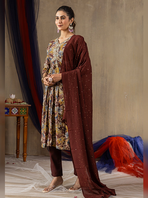 Maroon Alia Cut Embroidered With Hand Work Suit Set – Vamikaa