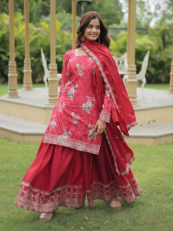 Maroon Chinnon Sequins & Embroidered Kurti With Palazzo Set – Vamikaa