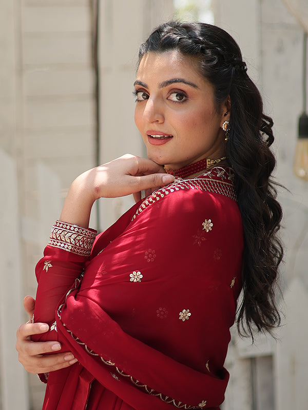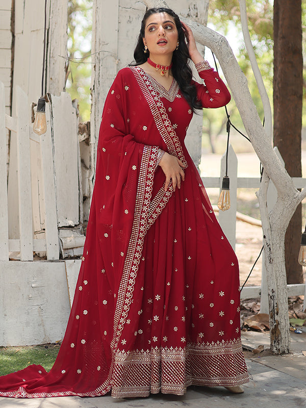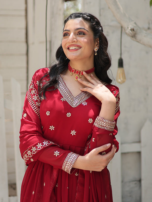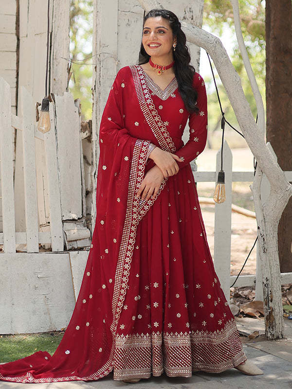 Maroon Faux Blooming Rich Sequins Heavy Gown With Dupatta – Vamikaa