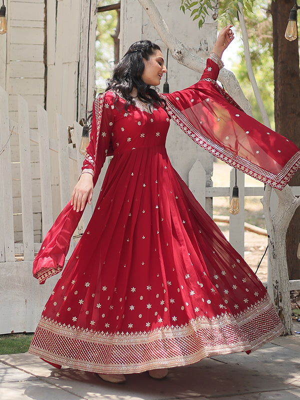 Buy Maroon Faux Blooming Rich Sequins Heavy Gown With Dupatta Online. This Kurti Is A Must Have In Every Woman's Wardrobe.
