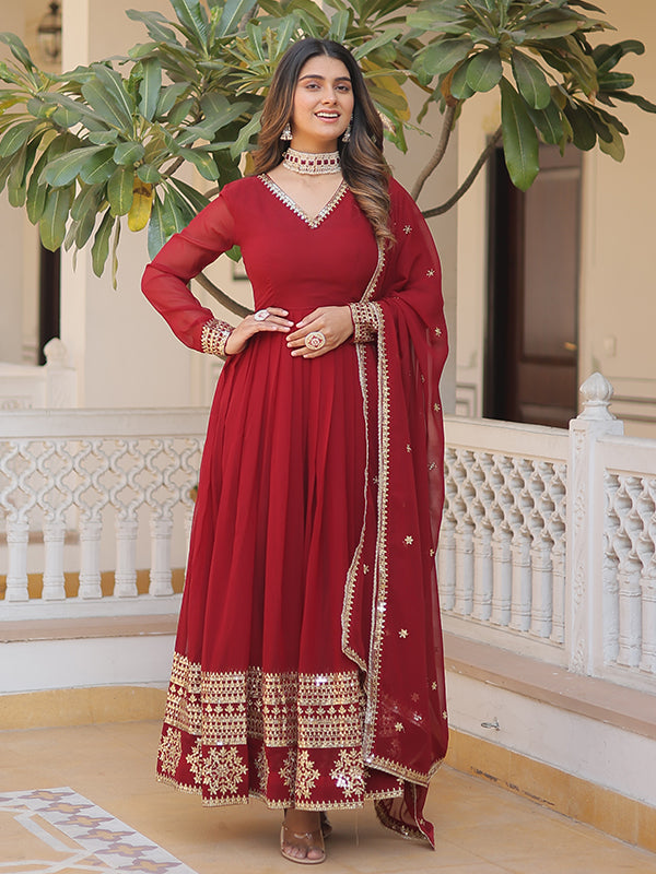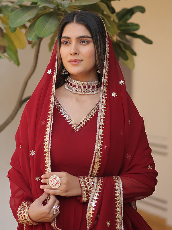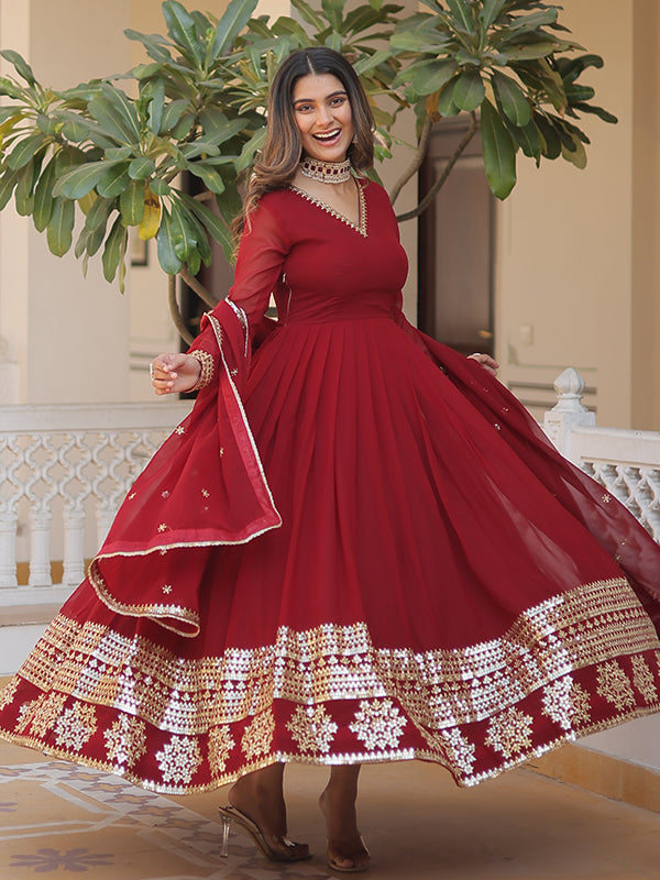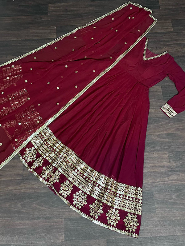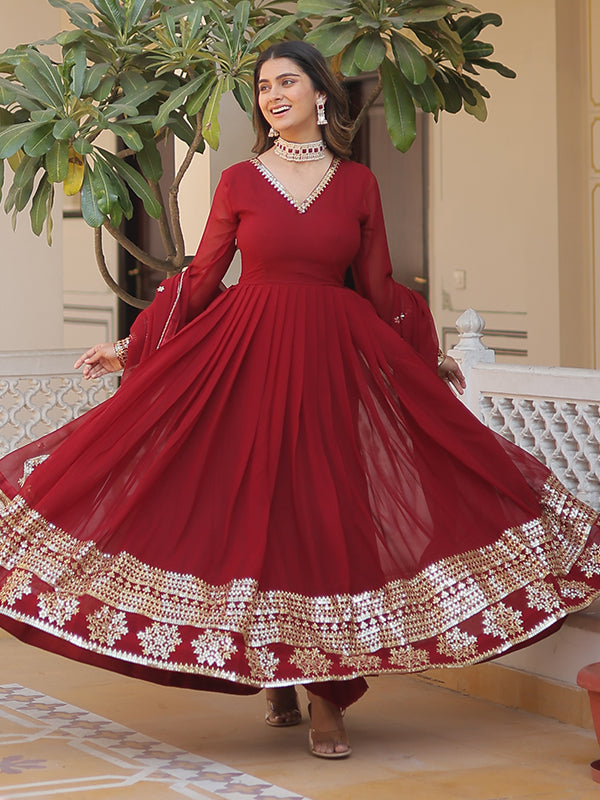 Maroon Sequins Work Lace Border Gown With Dupatta