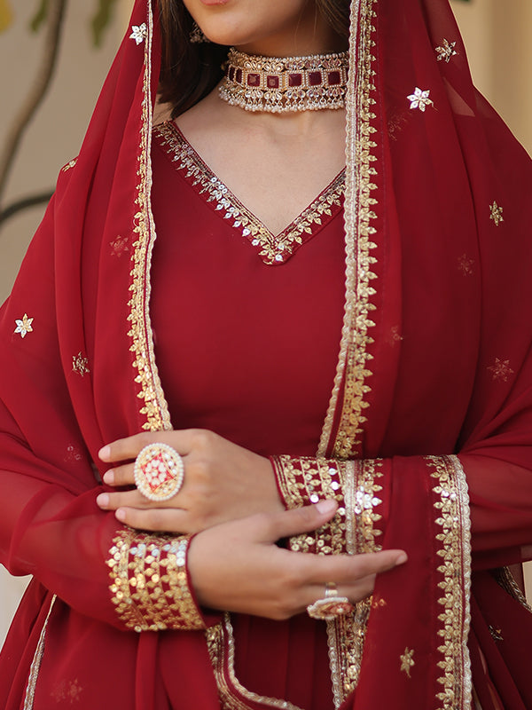 Maroon Sequins Work Lace Border Gown With Dupatta Maroon Sequins Work Lace Border Gown With Dupatta