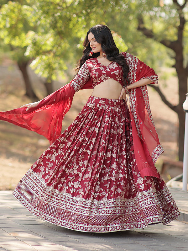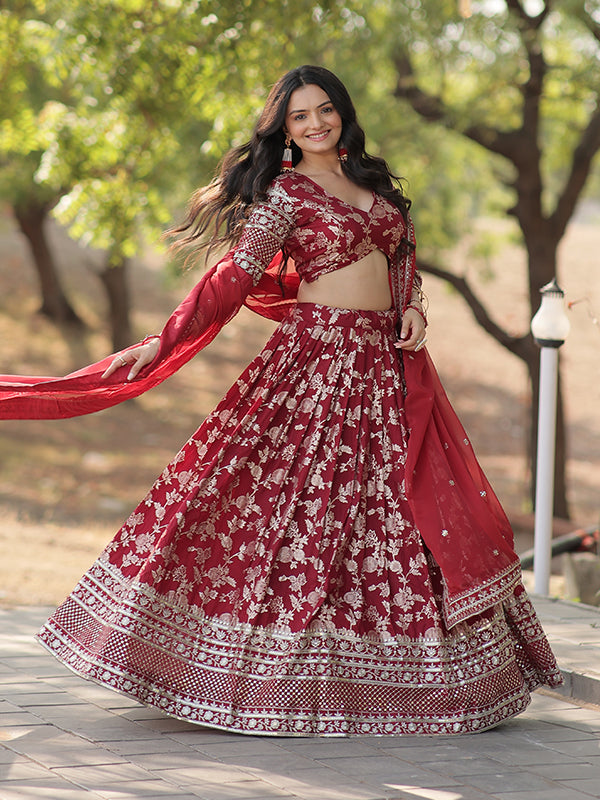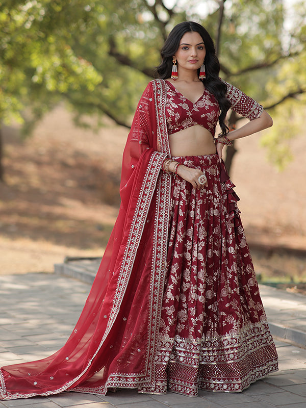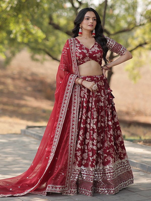 Maroon Viscose Jacquard With Embroidered Sequins Lehenga Choli