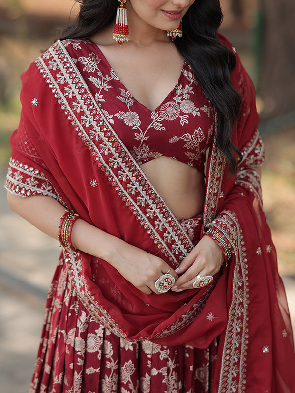 Maroon Viscose Jacquard With Embroidered Sequins Lehenga Choli – Vamikaa