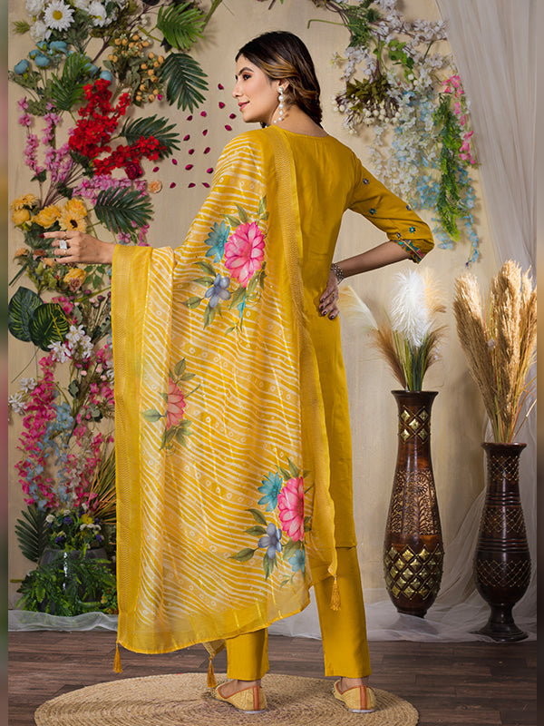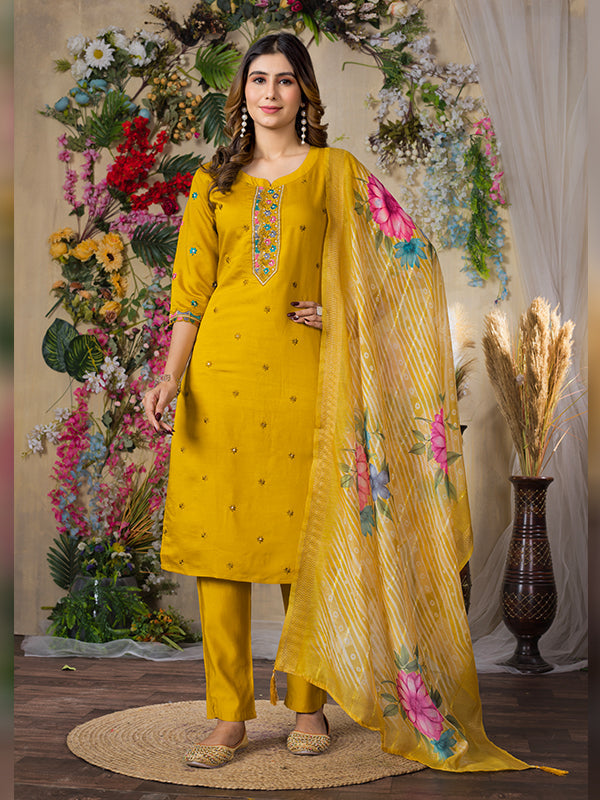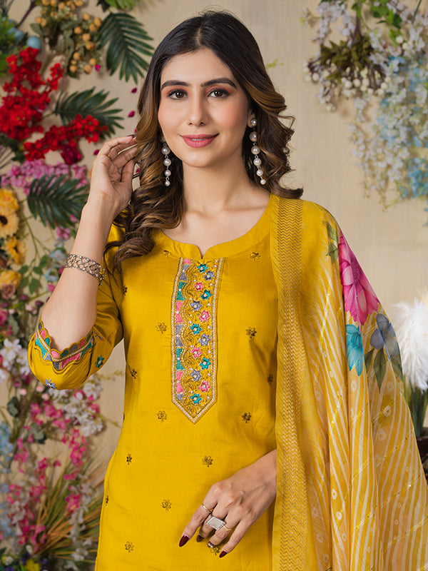 Mustard Yellow Roman Silk Embroidered With Hand Work Suit Set Mustard Yellow Roman Silk Embroidered With Hand Work Suit Set