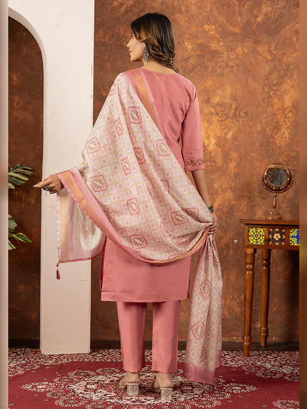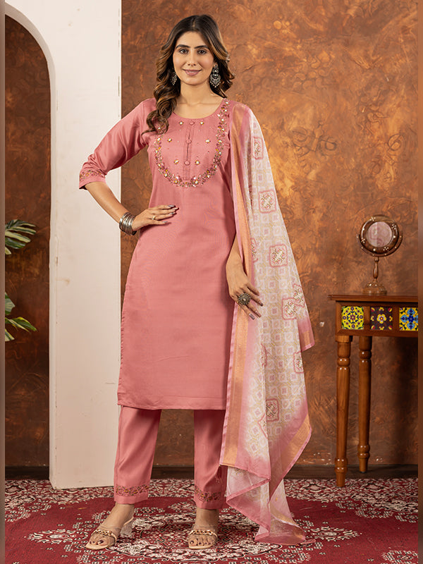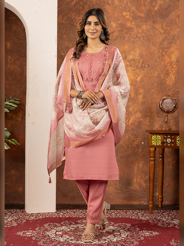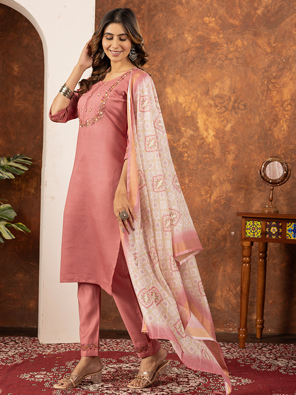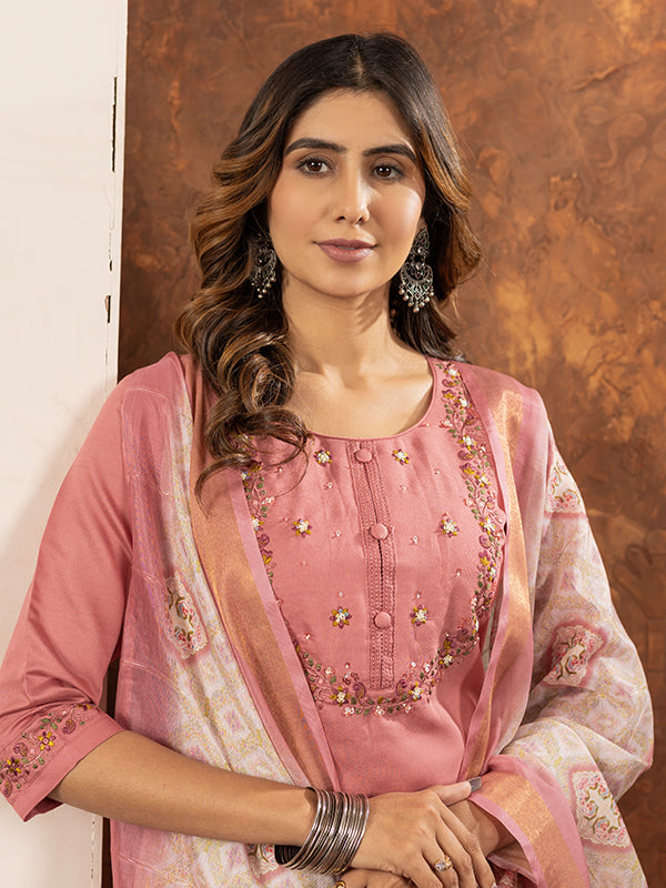 Peach Embroidered With Hand Work Suit Set – Vamikaa