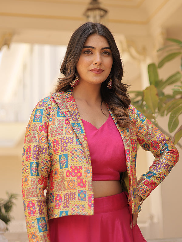 Pink Chinon Lehenga Choli With Jquard Designer Koti – Vamikaa