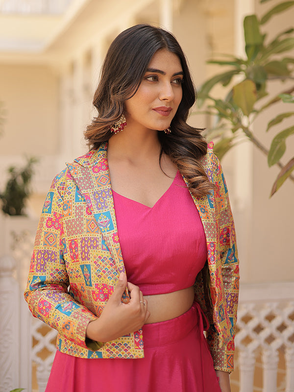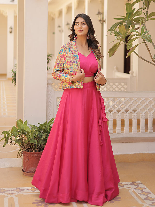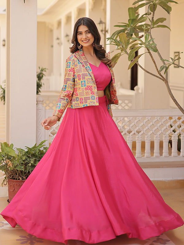 Pink Chinon Lehenga Choli With Jquard Designer Koti Pink Chinon Lehenga Choli With Jquard Designer Koti
