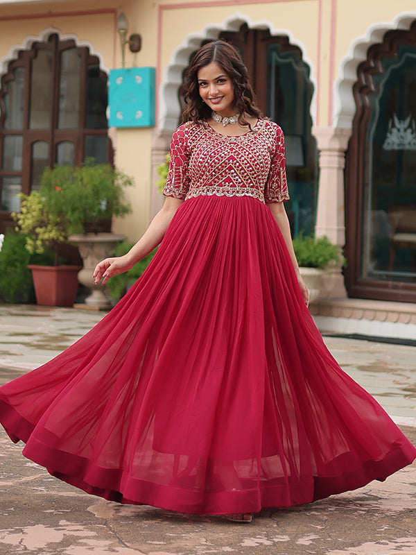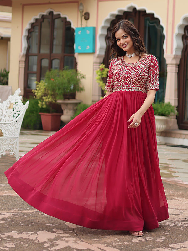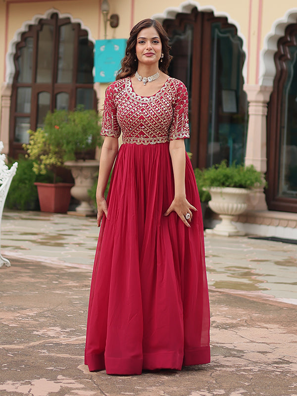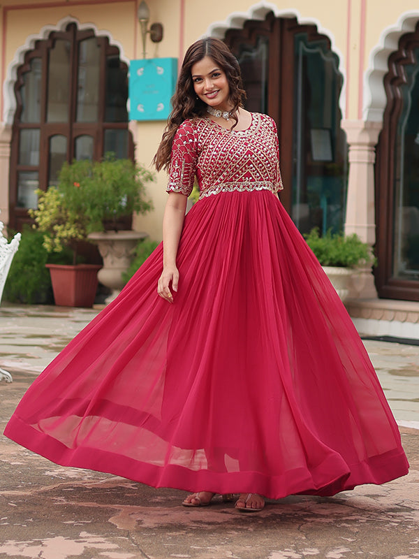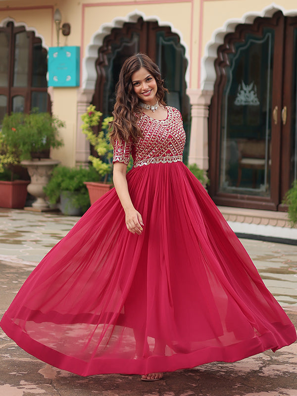Pink Faux Blooming With Embroidery Zari Sequins Gown – Vamikaa