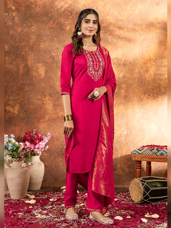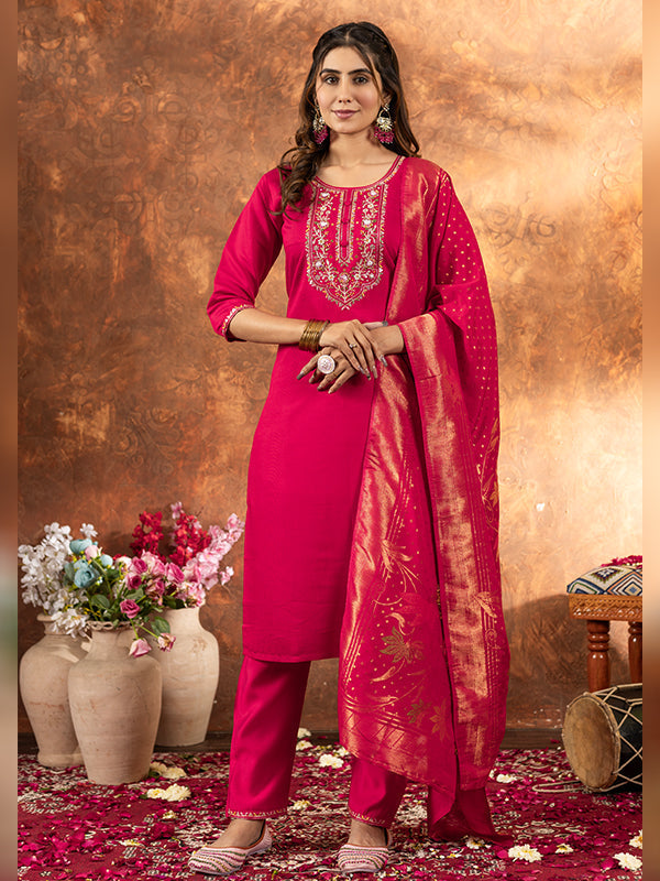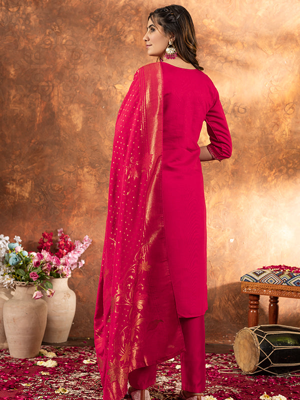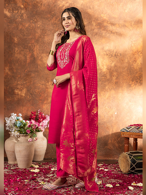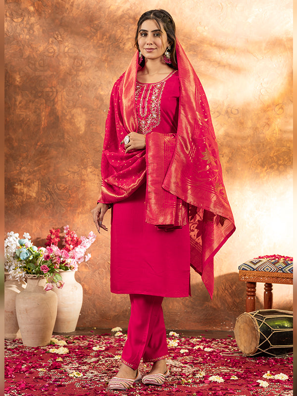 Pink Marina Silk Embroidered With Hand Work Suit Set Pink Marina Silk Embroidered With Hand Work Suit Set