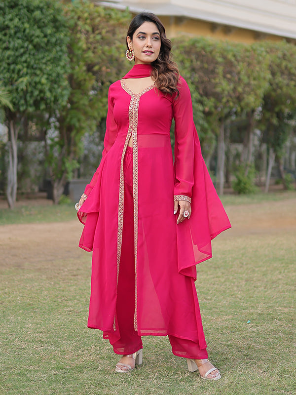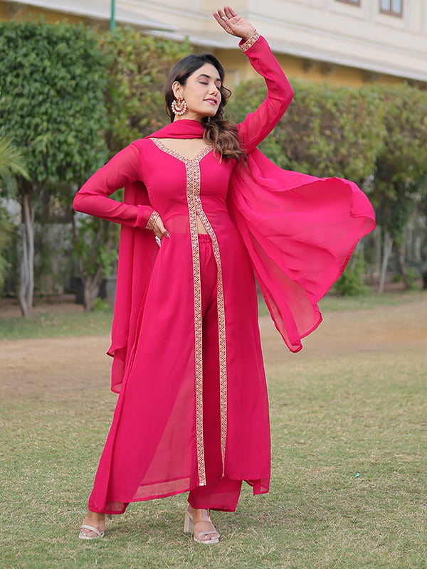Pink Slit Suit With Attractive Lace Border Pant & Dupatta Set – Vamikaa