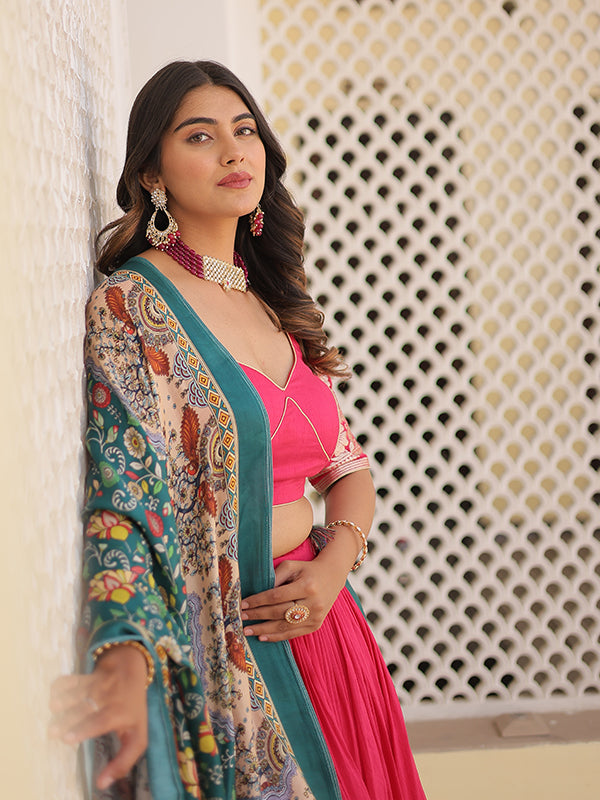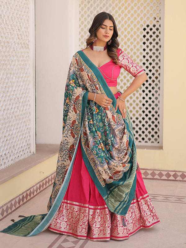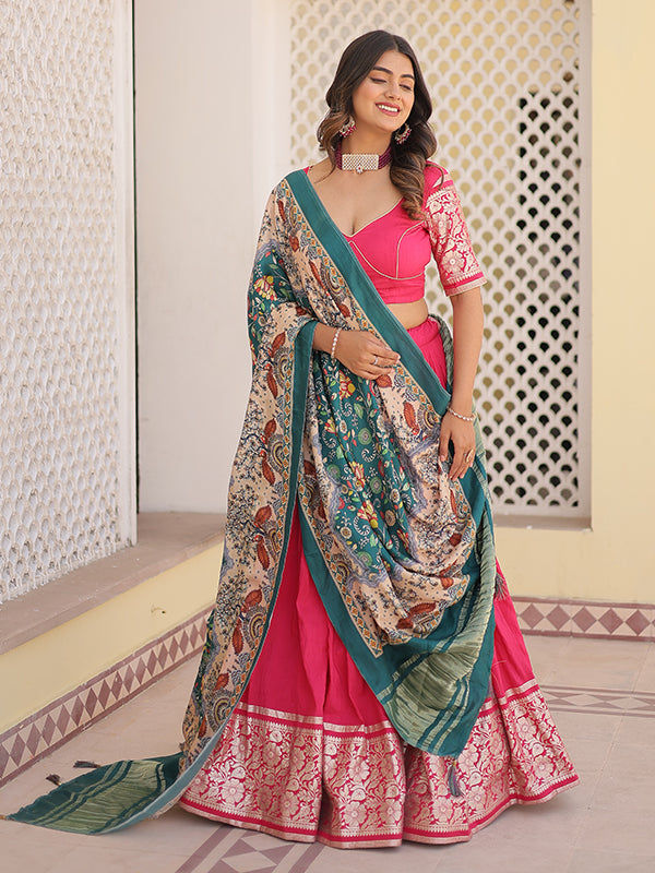 Pink Viscose Jacquard Lehenga Choli With Gajji silk Dupatta – Vamikaa