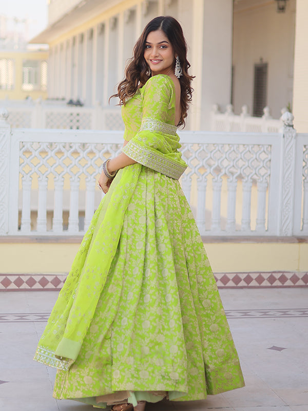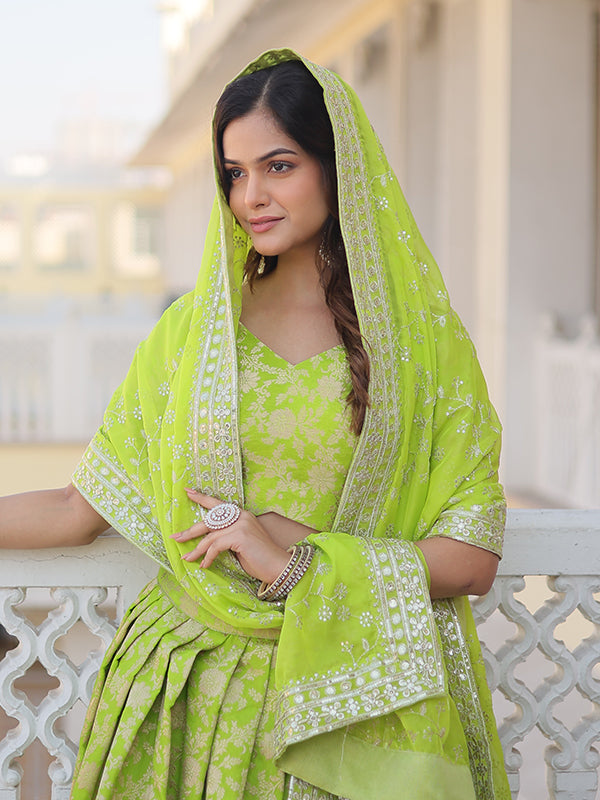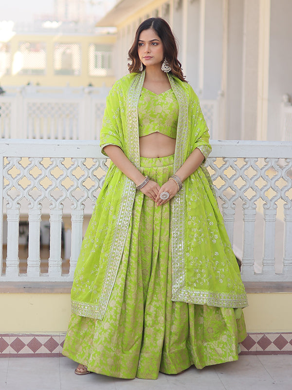 Pista Viscose Jacquard With Embroidered Sequins Lehenga Choli
