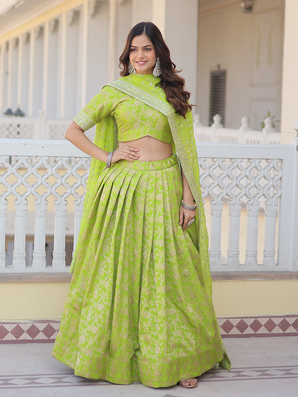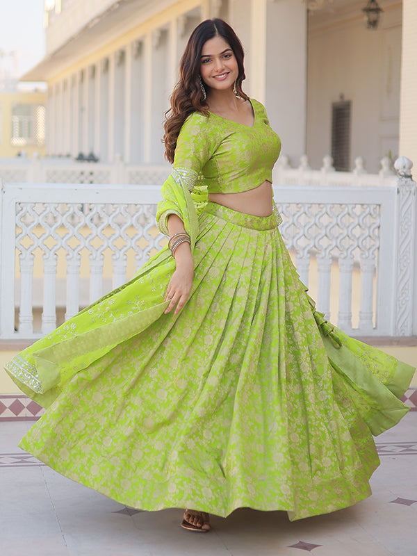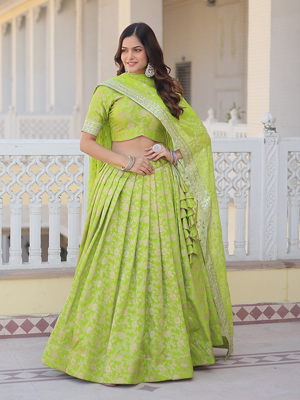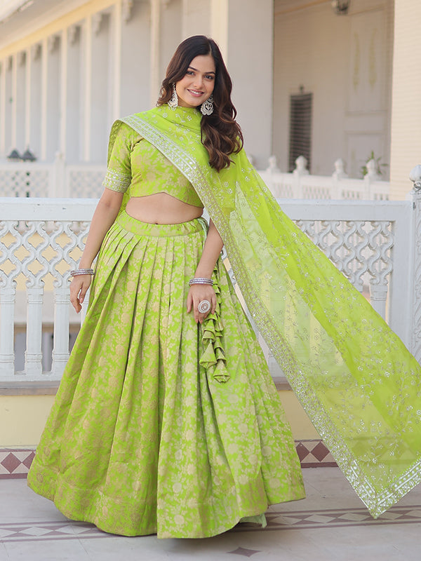 Pista Viscose Jacquard With Embroidered Sequins Lehenga Choli Pista Viscose Jacquard With Embroidered Sequins Lehenga Choli