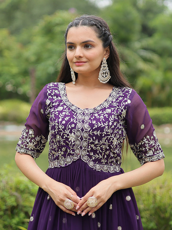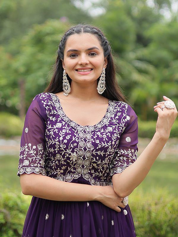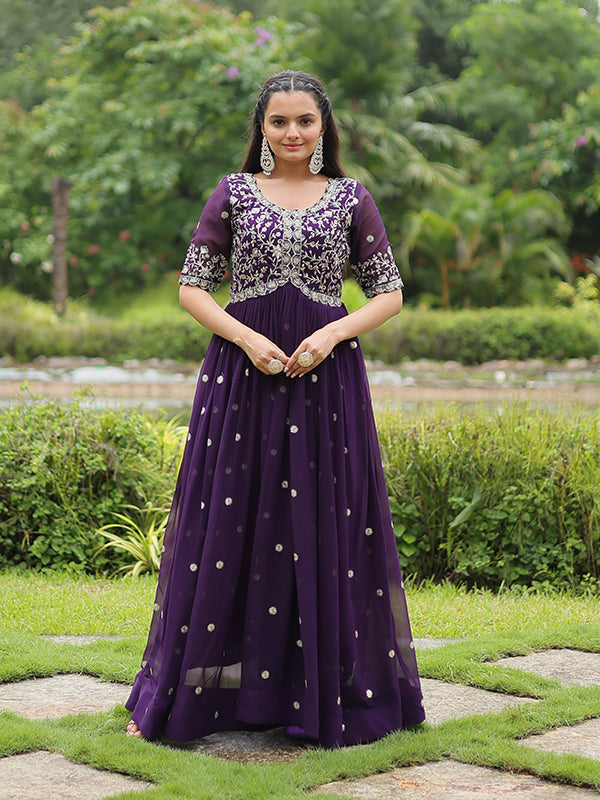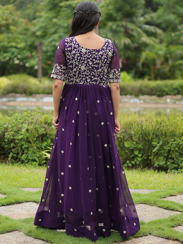 Purple Faux Blooming With Embroidery Zari Sequins Gown Purple Faux Blooming With Embroidery Zari Sequins Gown