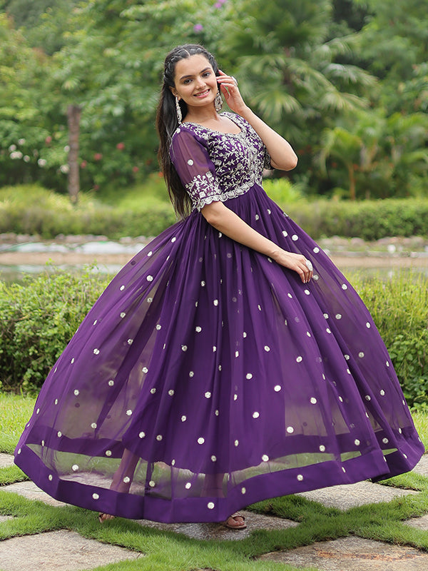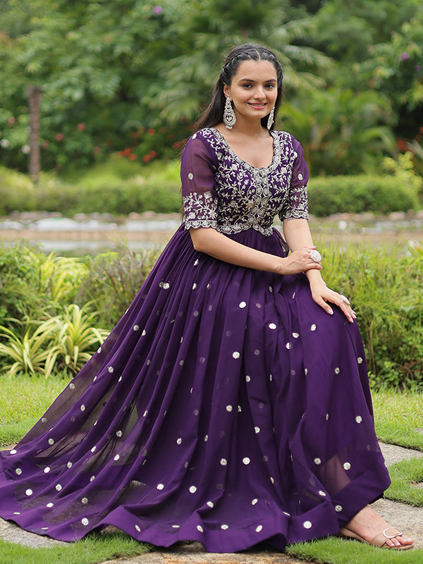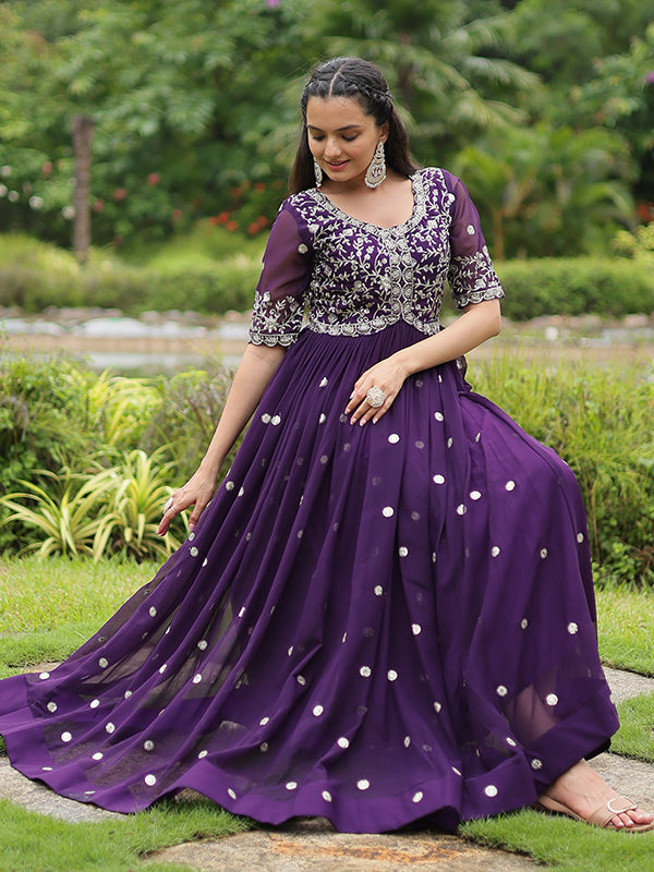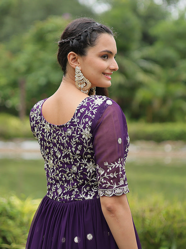 Purple Faux Blooming With Embroidery Zari Sequins Gown – Vamikaa