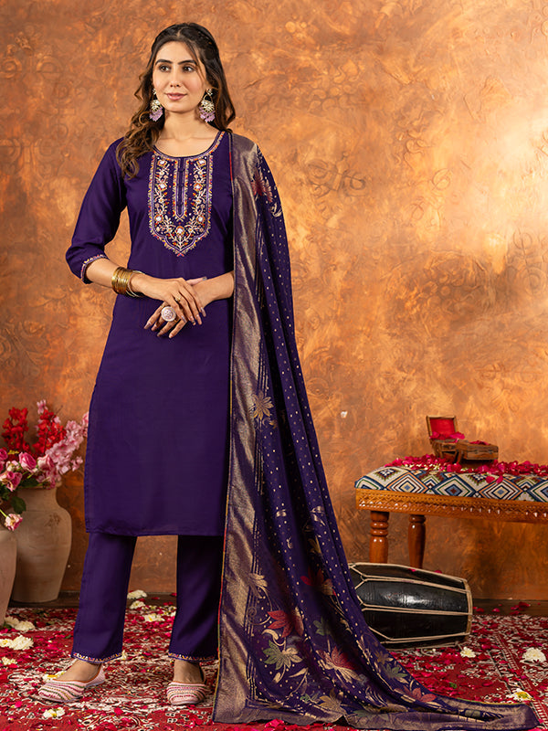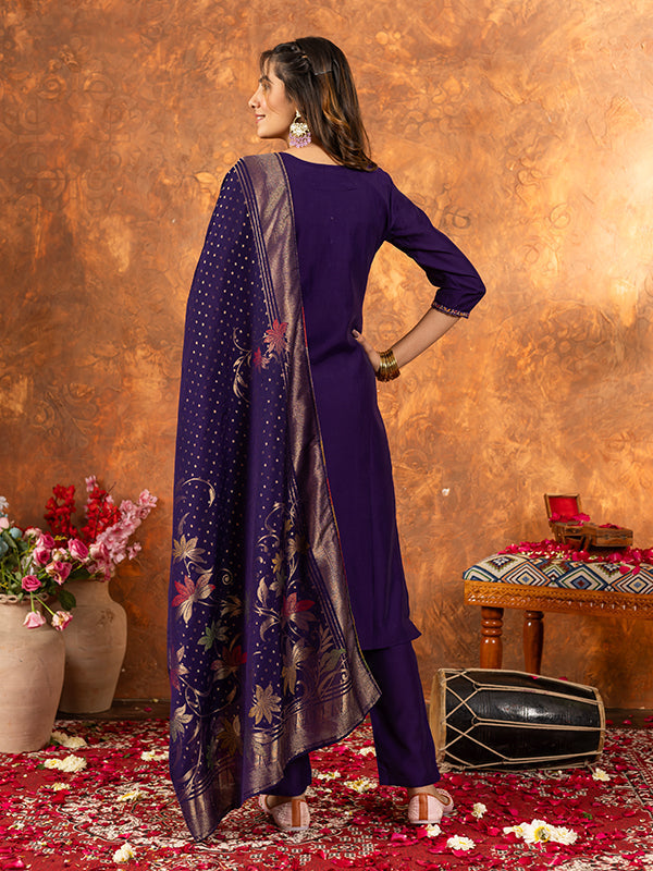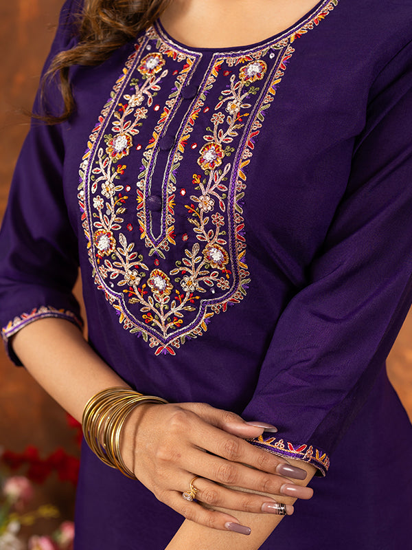 Purple Marina Silk Embroidered With Hand Work Suit Set – Vamikaa