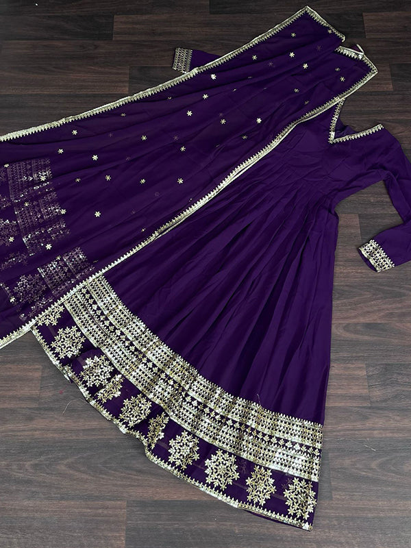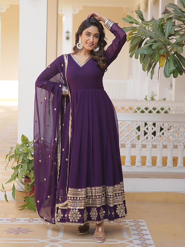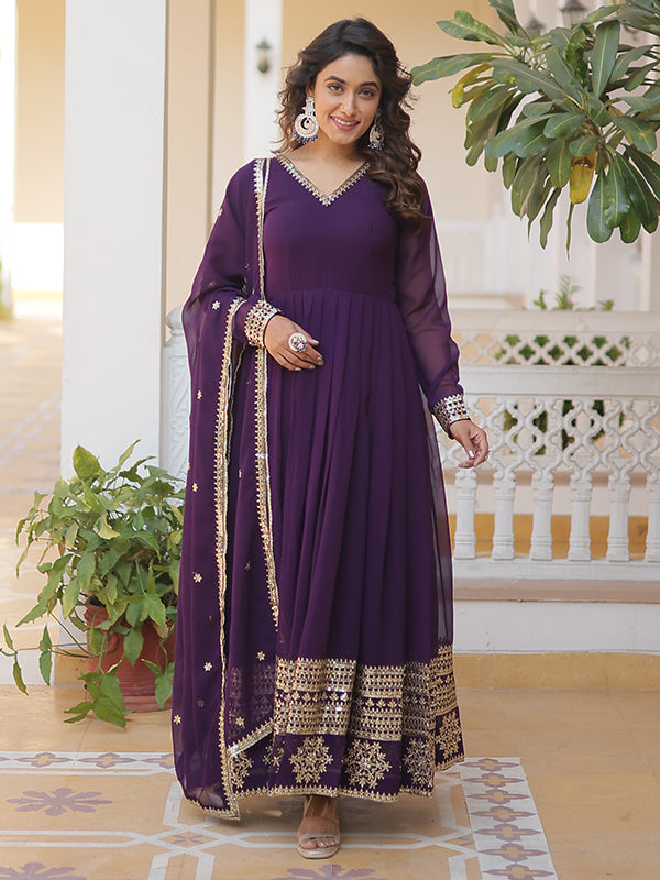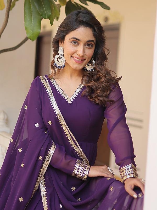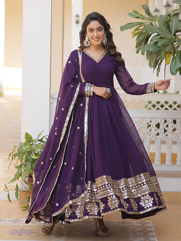 Purple Sequins Work Lace Border Gown With Dupatta Purple Sequins Work Lace Border Gown With Dupatta
