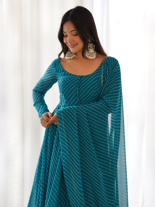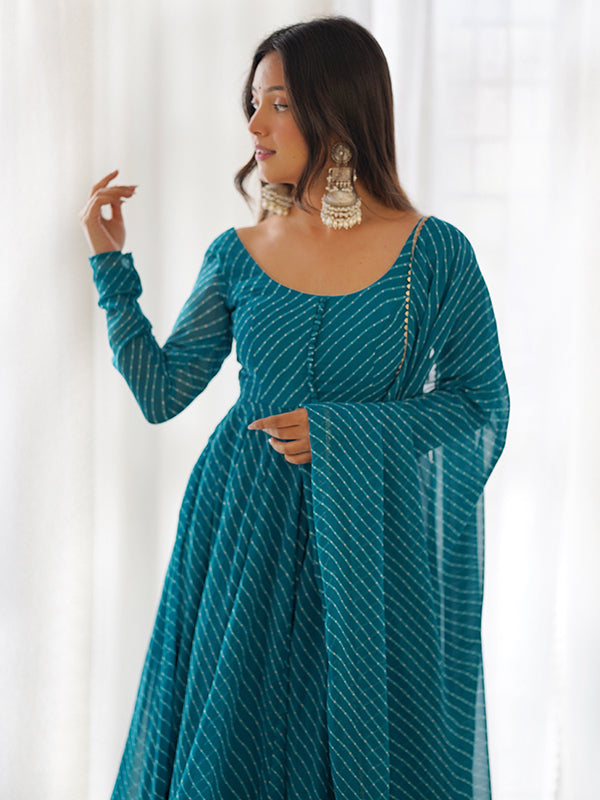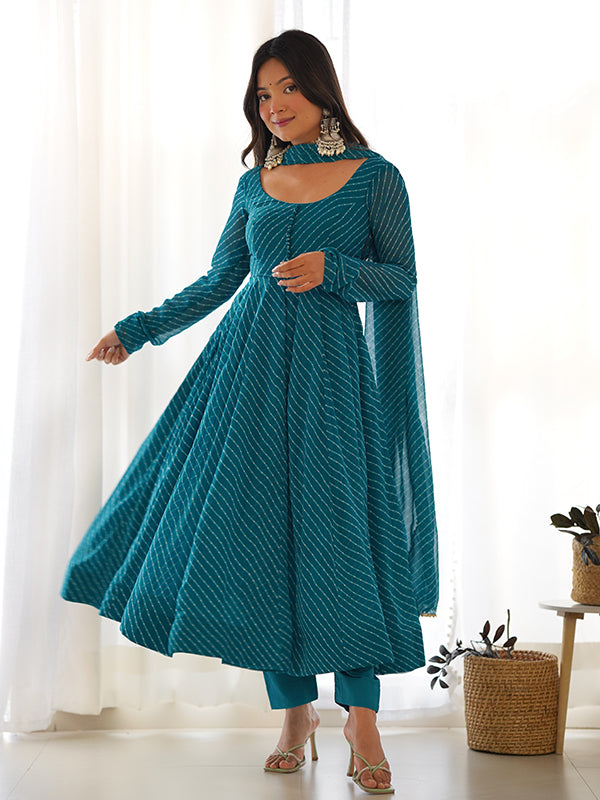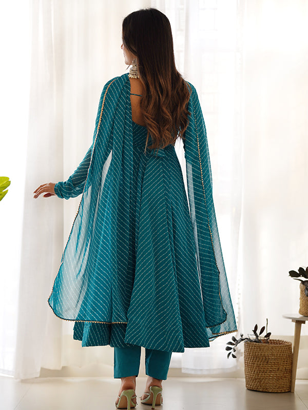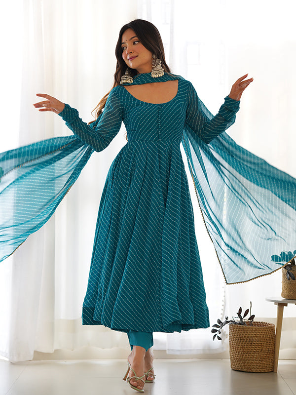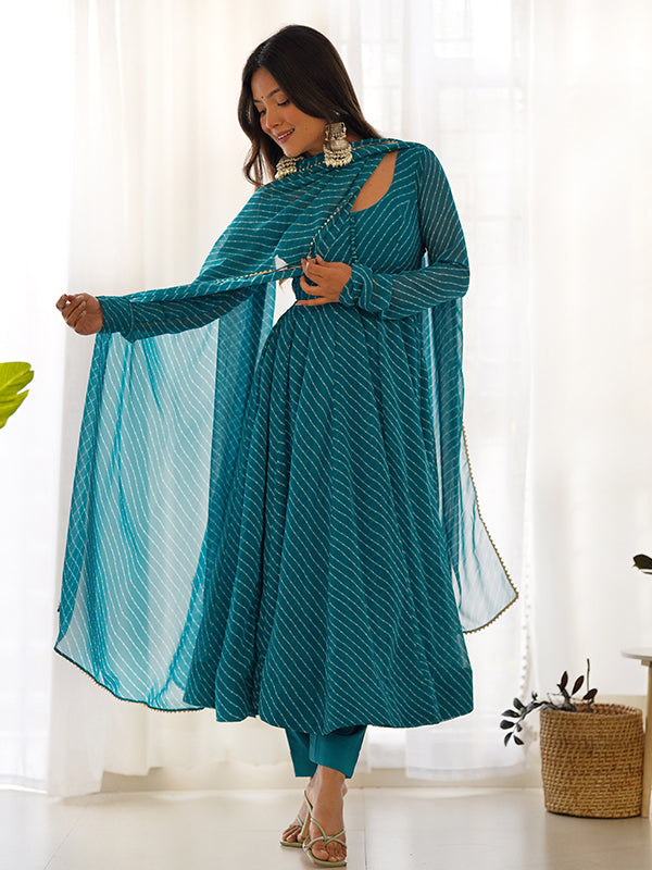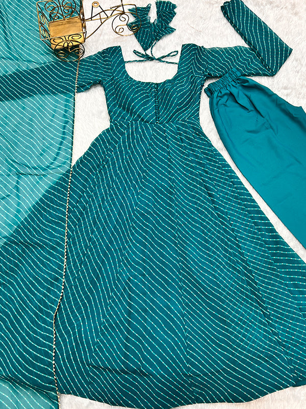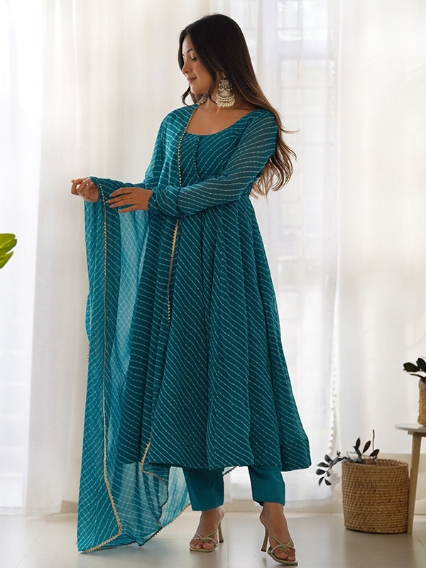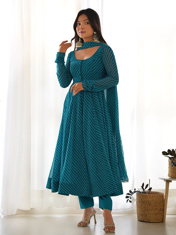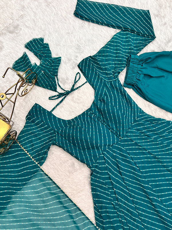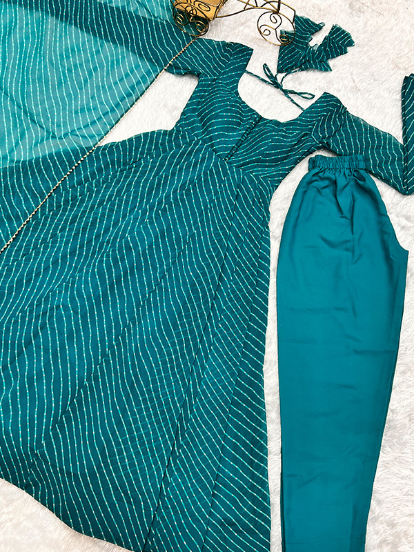 Rama Lining Printed Anarkali Kurti With Pant & Dupatta Set