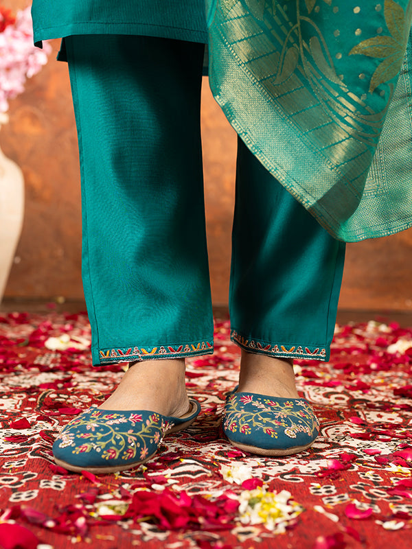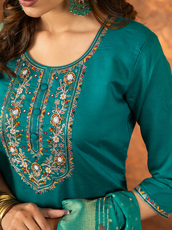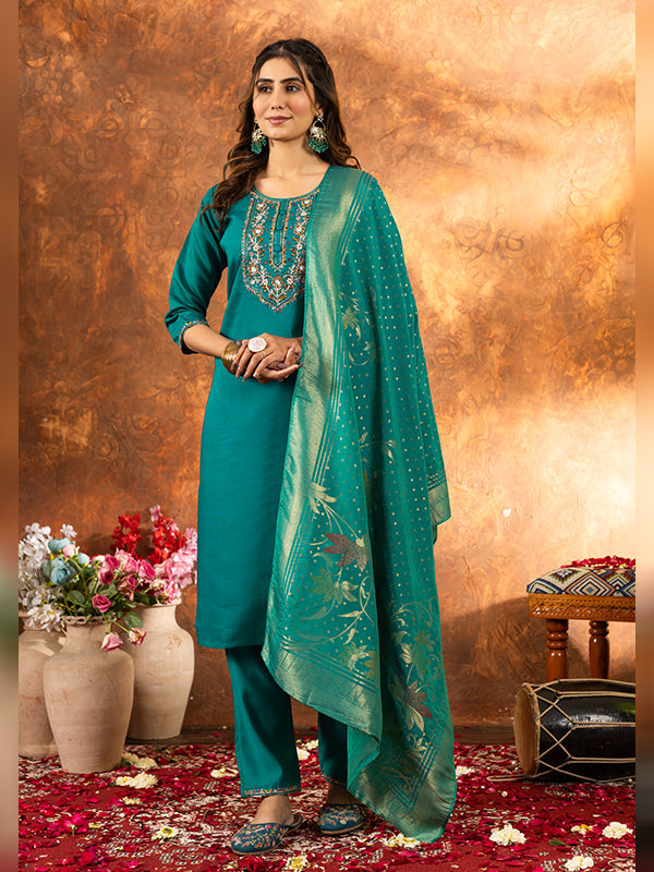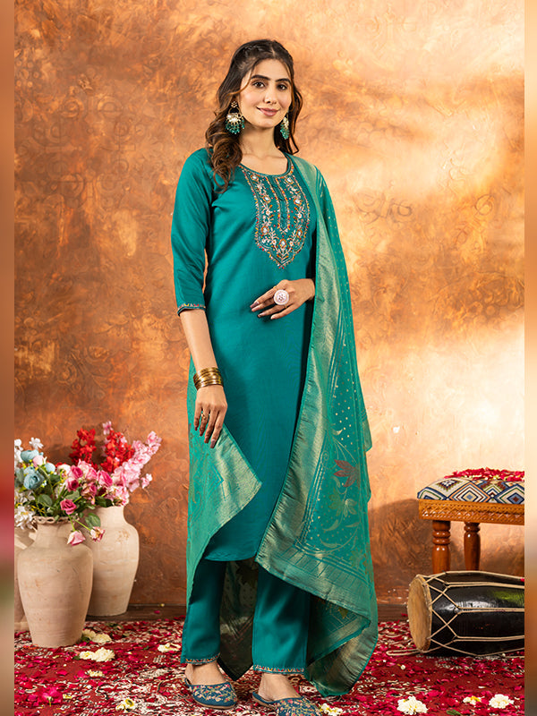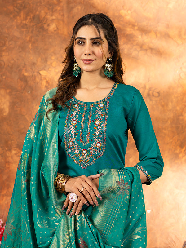Rama Marina Silk Embroidered With Hand Work Suit Set – Vamikaa
