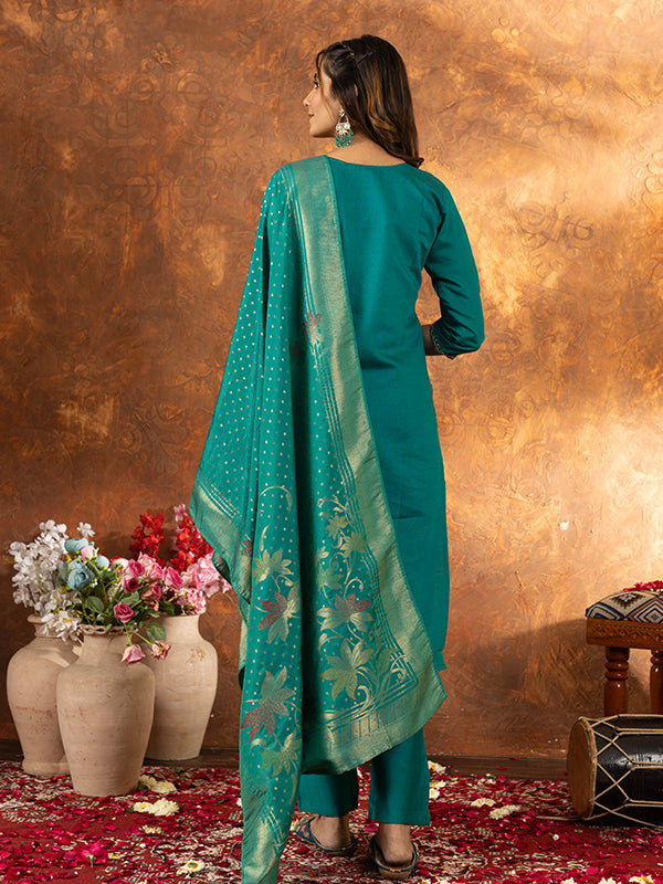 Rama Marina Silk Embroidered With Hand Work Suit Set