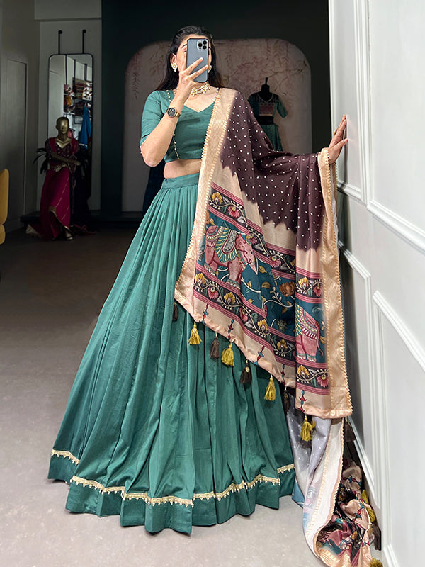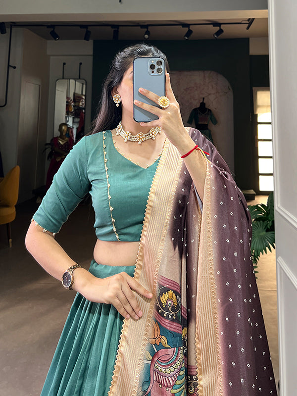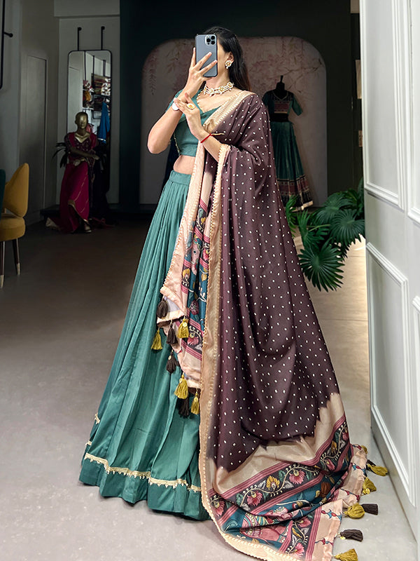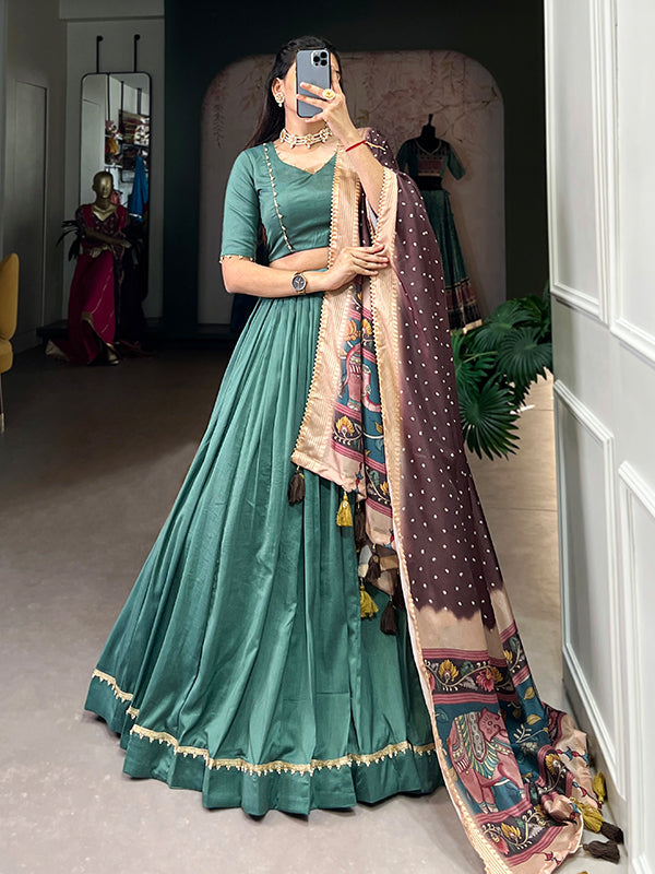 Sea Green Chinon Silk Lace Border Lehenga Choli – Vamikaa