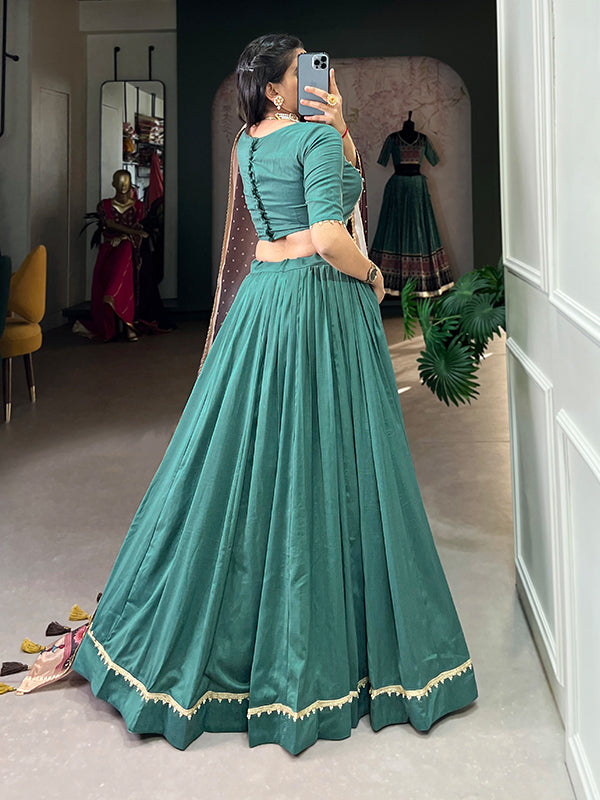 Buy Sea Green Chinon Silk Lace Border Lehenga Choli Online. This Lehenga Choli Is A Must Have In Every Woman's Wardrobe.