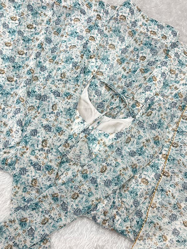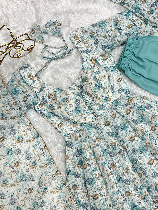 White Fulwari Organza Printed Anarkali Kurti With Pant & Dupatta Set – Vamikaa