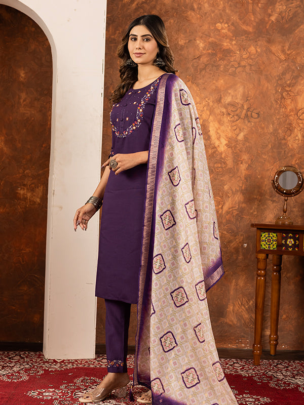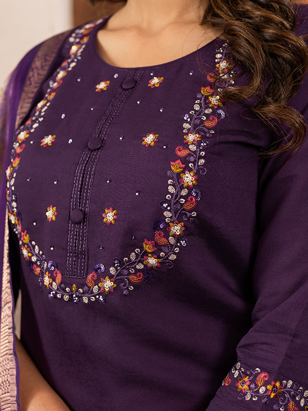 Wine Embroidered With Hand Work Suit Set Wine Embroidered With Hand Work Suit Set