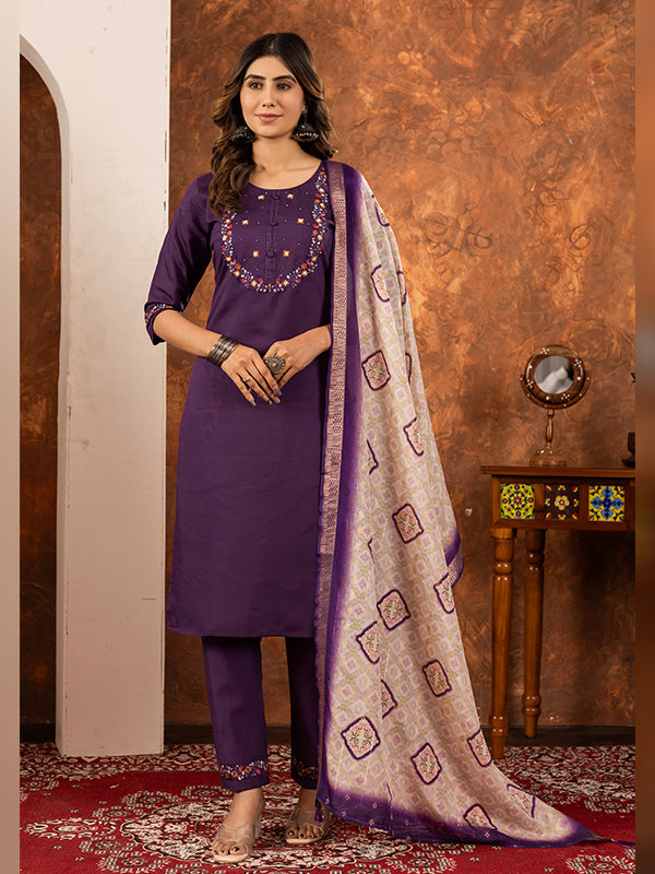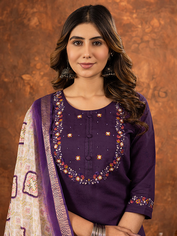 Wine Embroidered With Hand Work Suit Set – Vamikaa