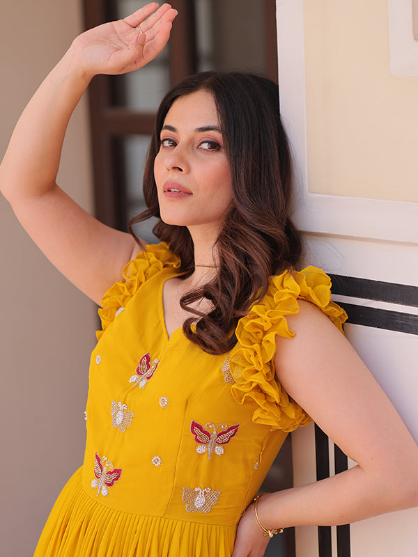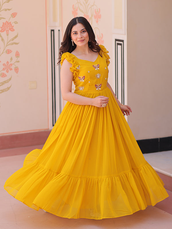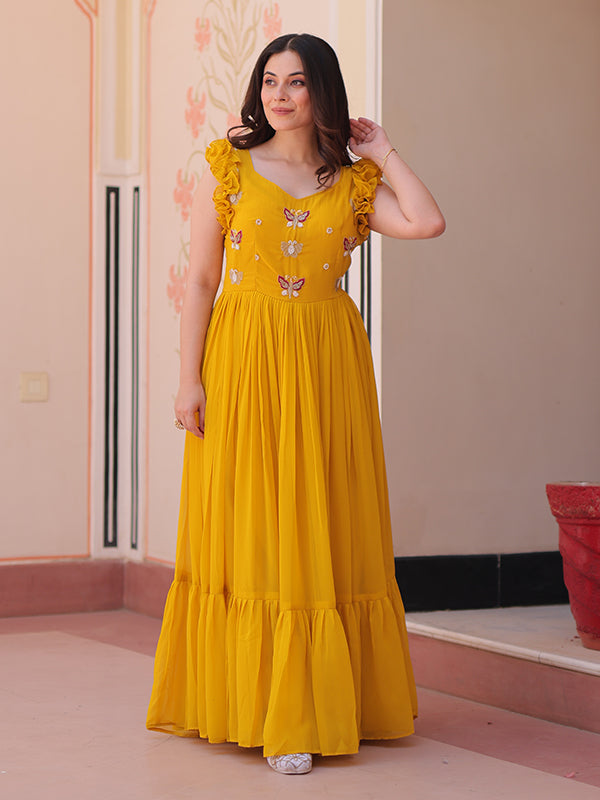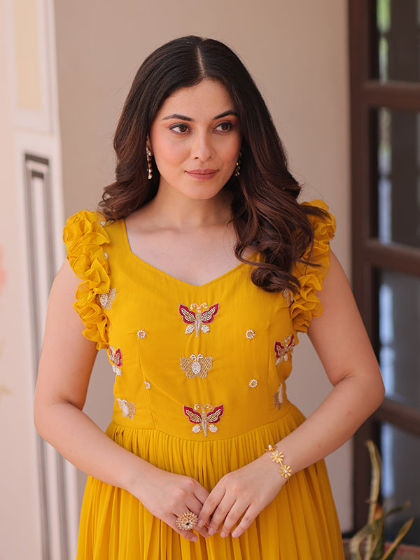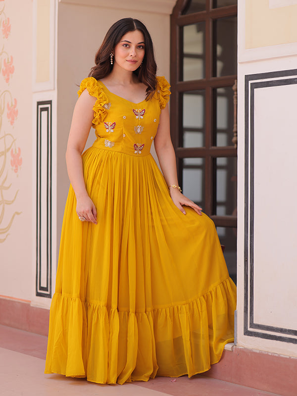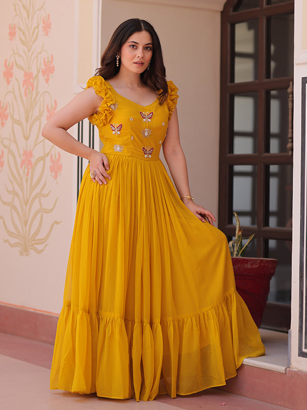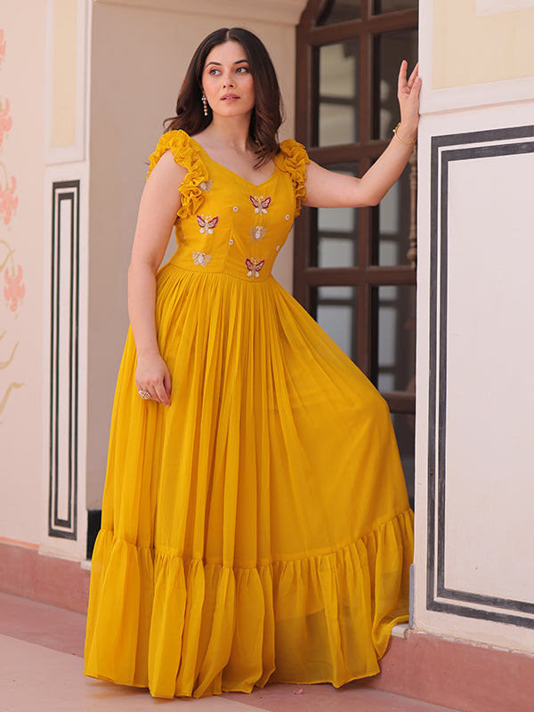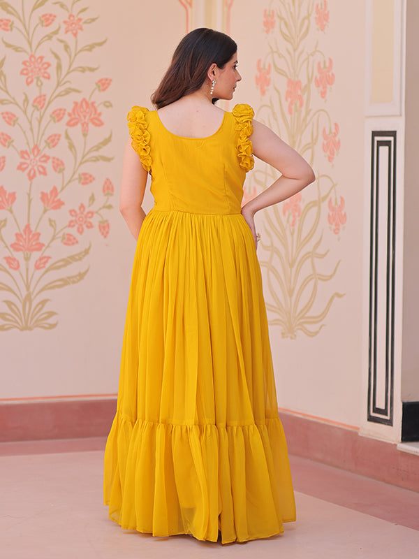 Yellow Faux Blooming With Multithreaded Sequins Gown – Vamikaa