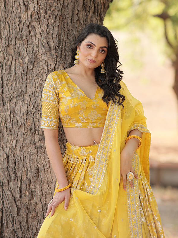 Yellow Viscose Jacquard With Embroidered Sequins Lehenga Choli – Vamikaa