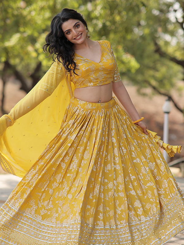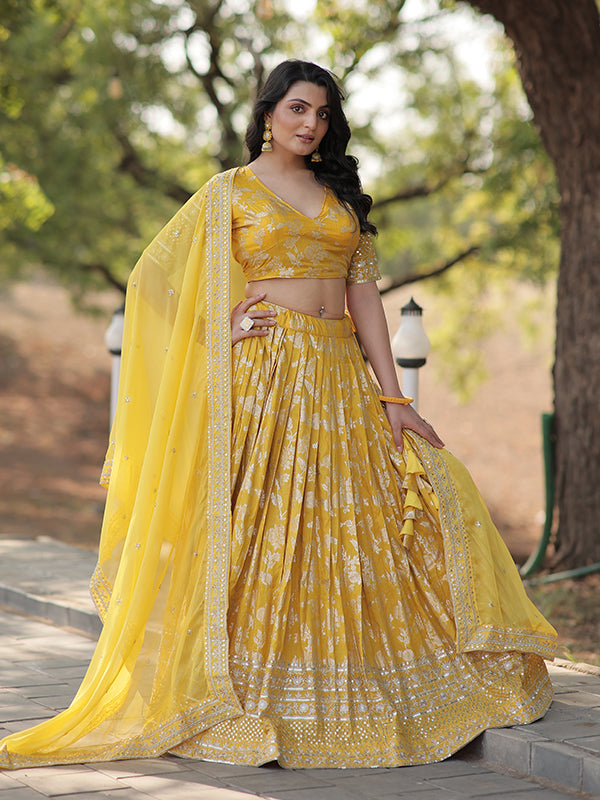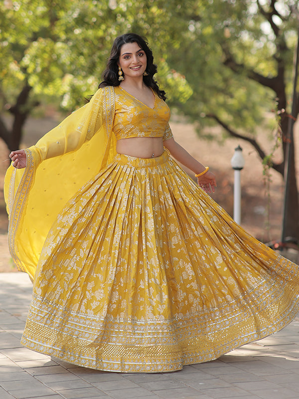 Yellow Viscose Jacquard With Embroidered Sequins Lehenga Choli Yellow Viscose Jacquard With Embroidered Sequins Lehenga Choli