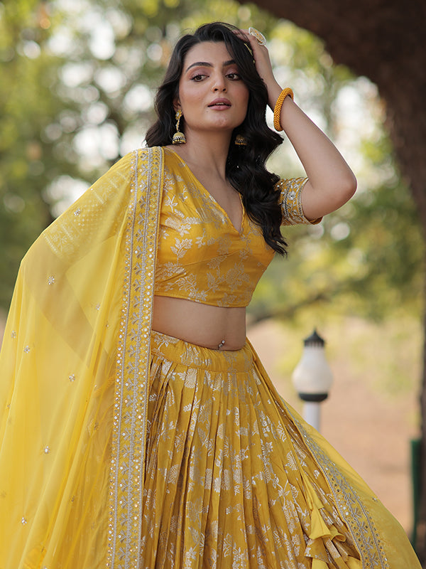 Yellow Viscose Jacquard With Embroidered Sequins Lehenga Choli